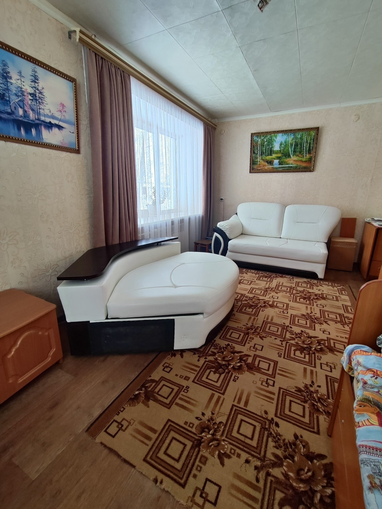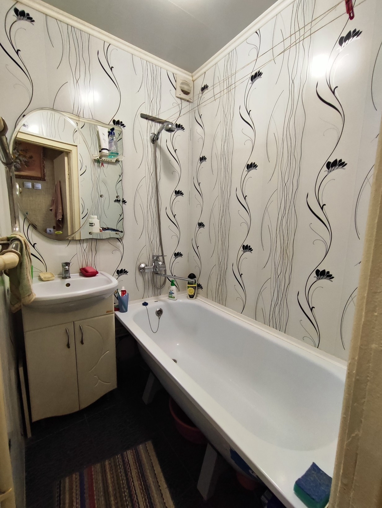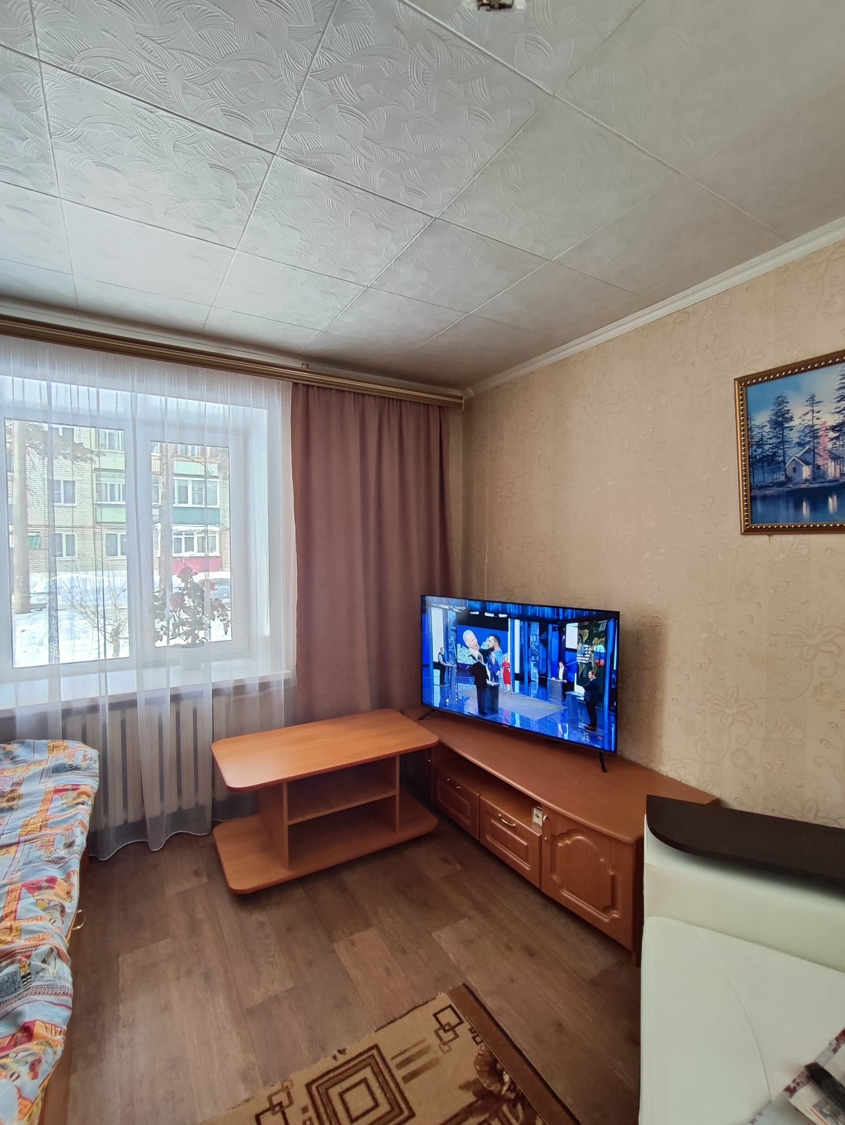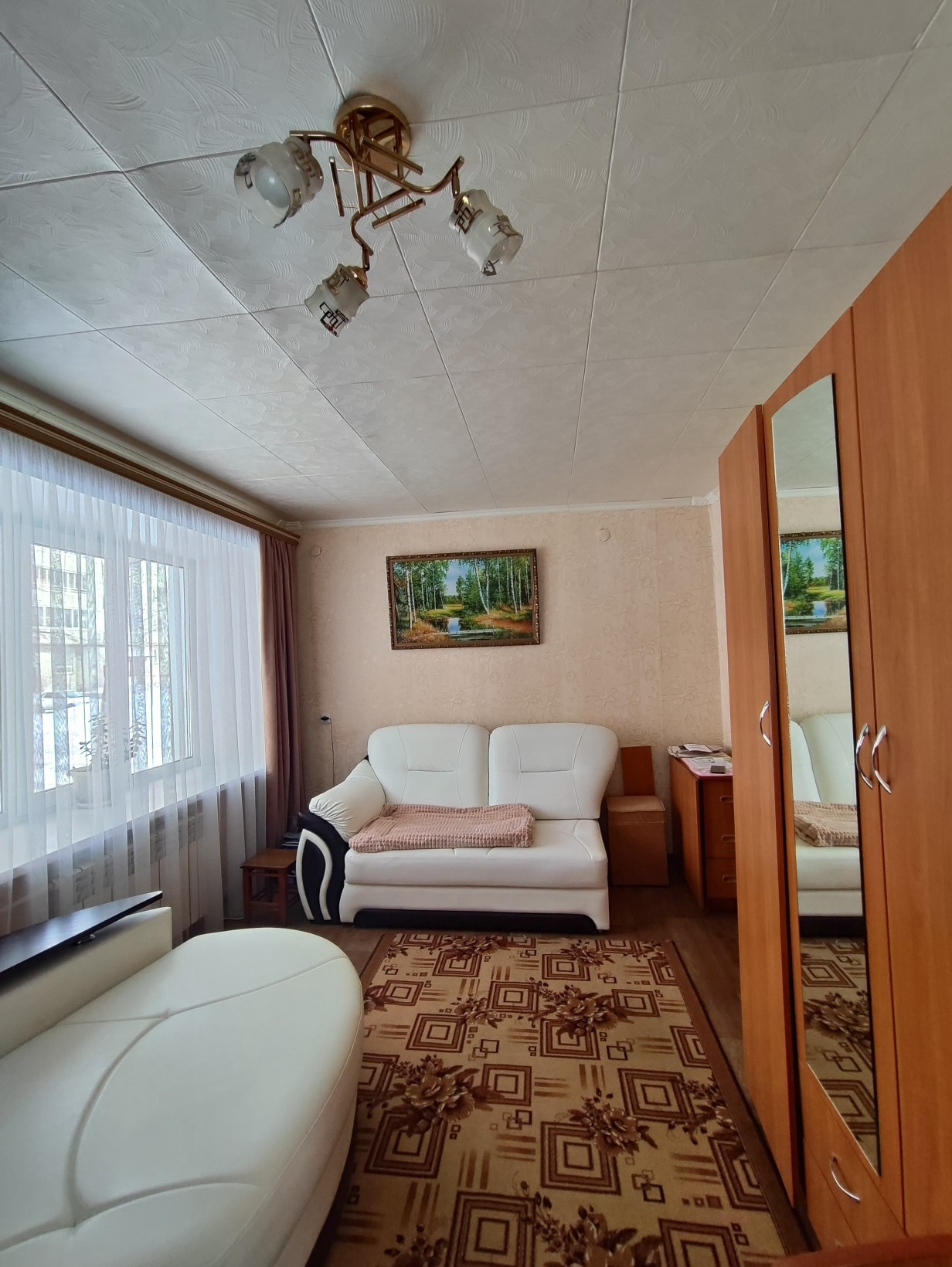 В продаже однокомнатная квартира с косметическим ремонтом. В зале установлены пластиковые окна, на полу линолеум. На кухне установлено деревянное окно. Санузел раздельный, с отделкой пластиковыми панелями.