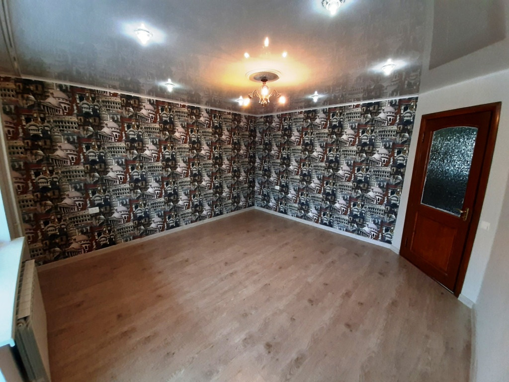 Ровные стены и пол.  Во всей квартире заменена электропроводка (медный кабель).