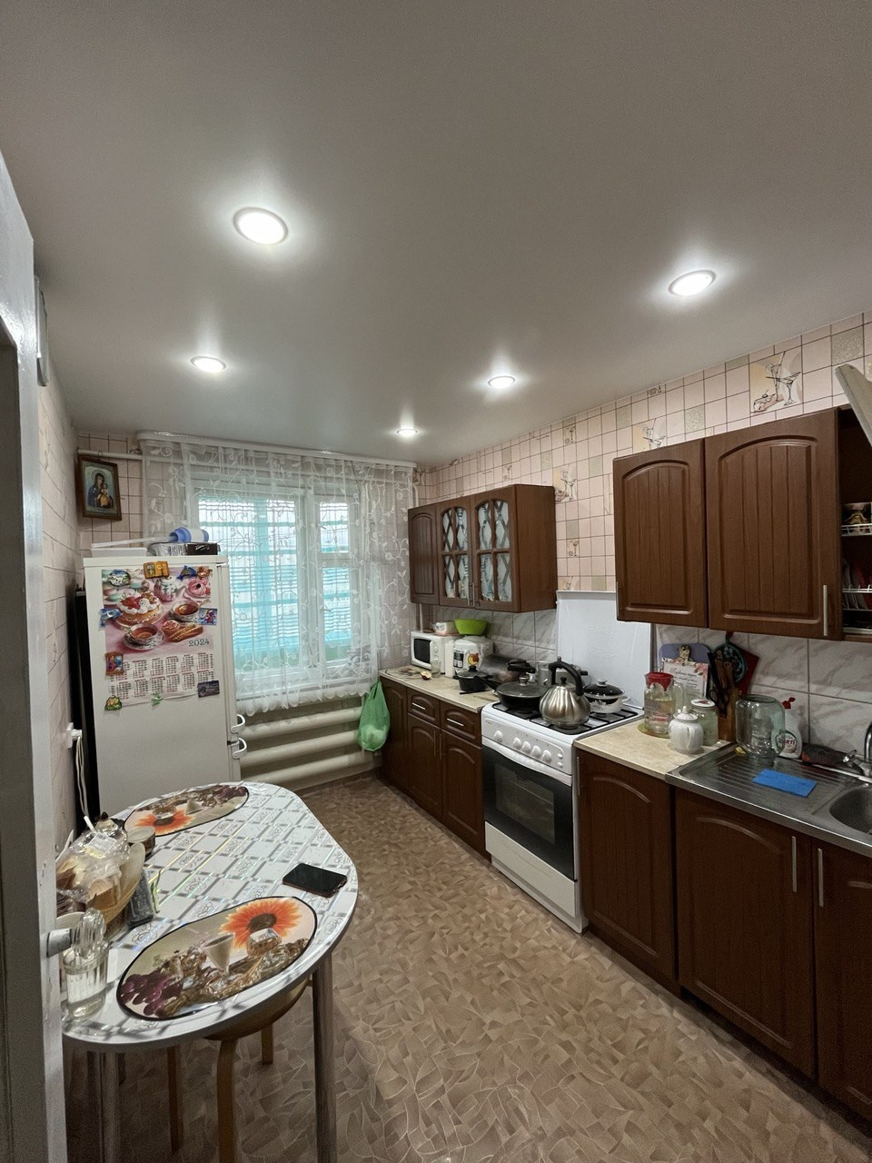 В продаже просторная квартира в хорошем районе, сад,школа,остановка рядом, окна пластиковые, входная дверь поменяна,натяжные потолки, трубы поменяны,счетчики на все стоят, ванна обшита пластиковыми панелями, на полу линолеум, две лоджии,выходят на обе стороны.