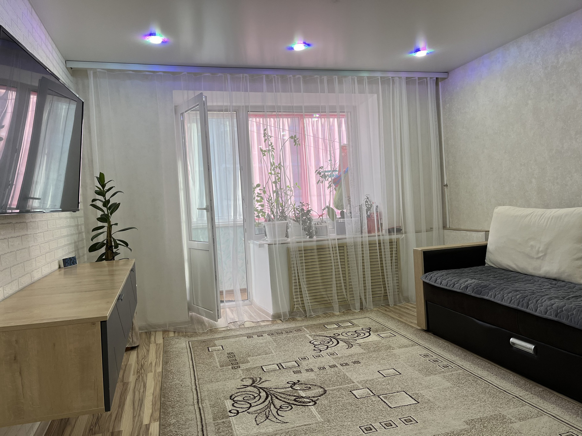 - натяжные потолки со встроенными светильниками во всех комнатах;