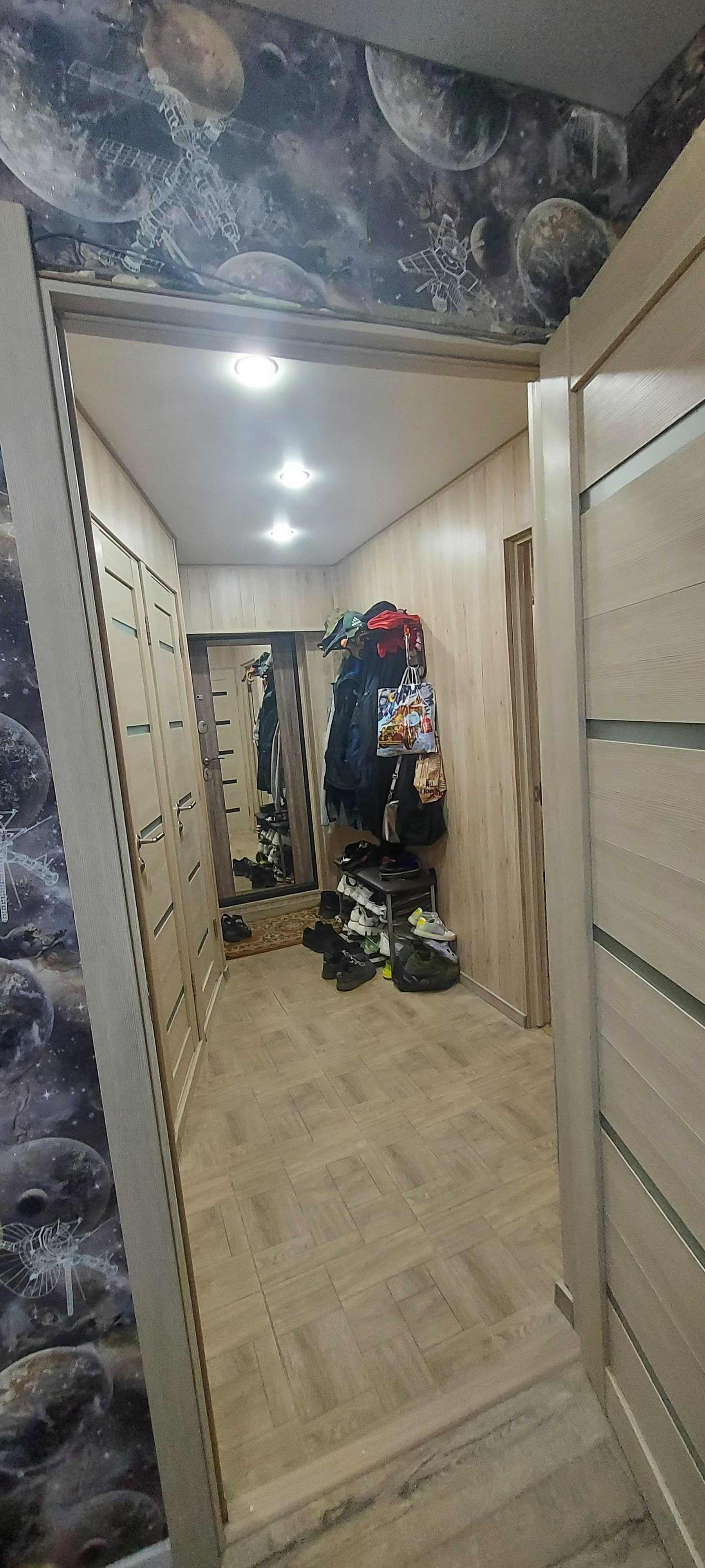 Квартира с ремонтом: пол выровнен. В прихожей и на кухне кафель.