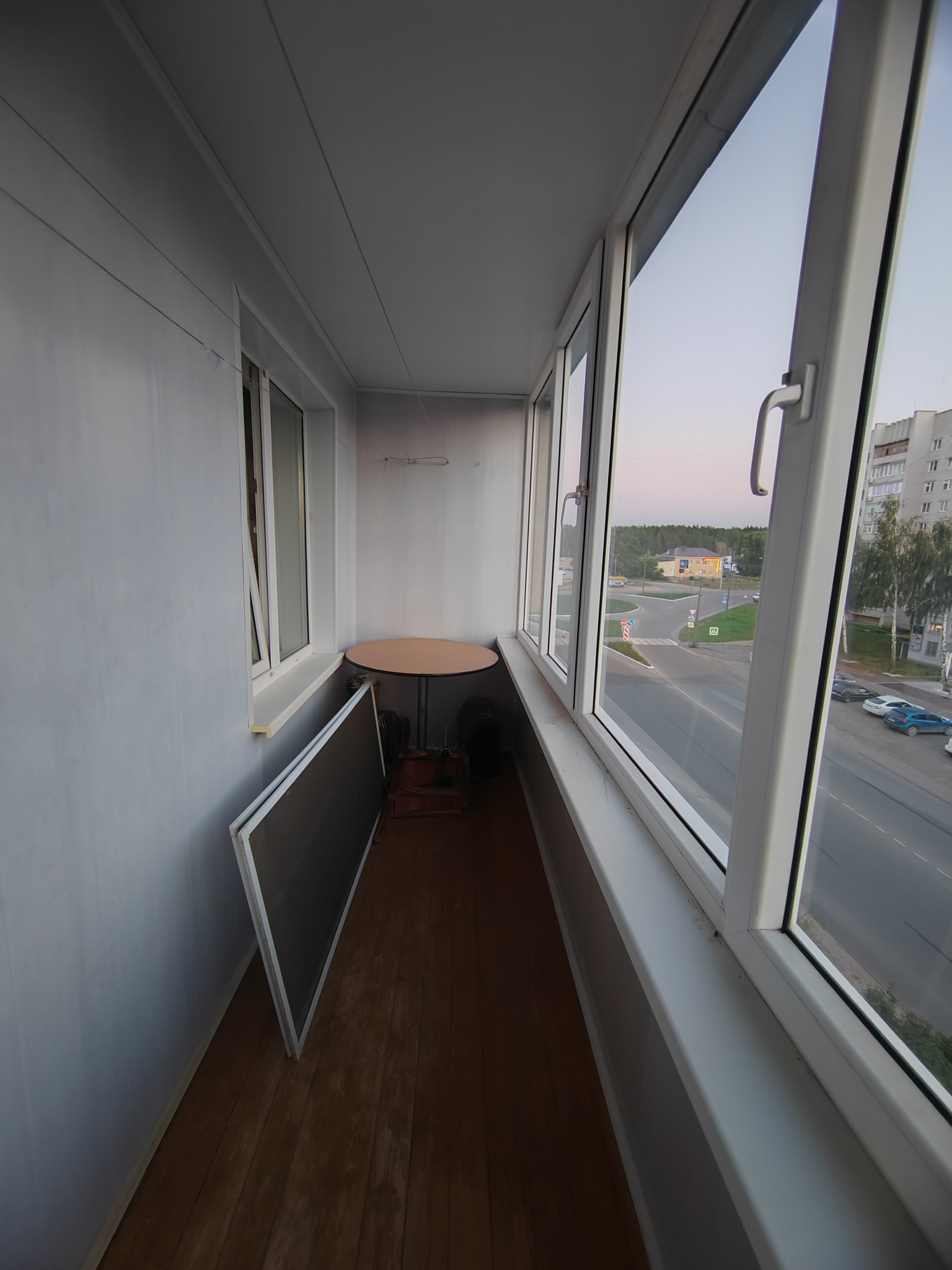 Лоджия застеклена, стены обшиты.