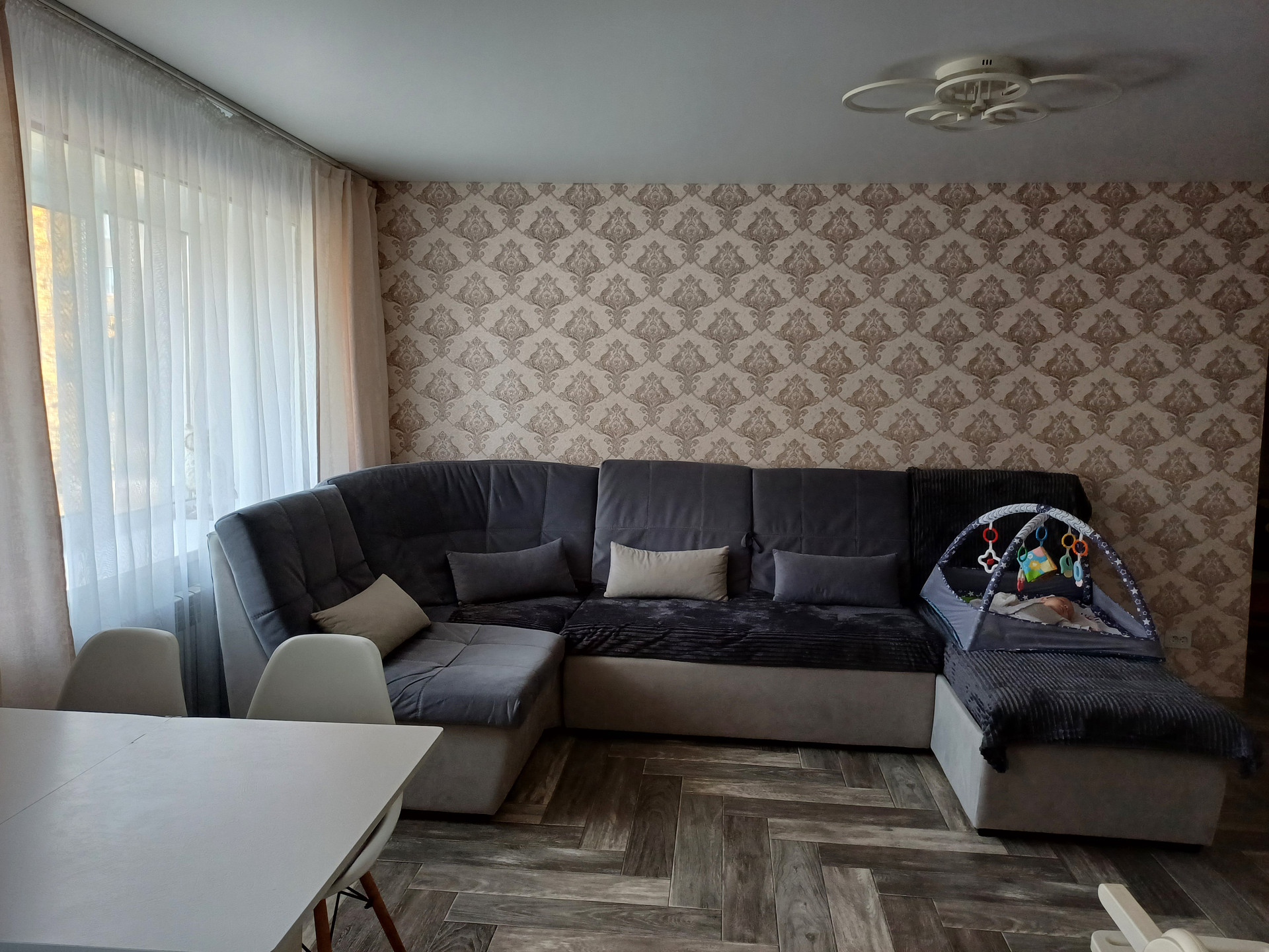 Квартира с ремонтом, окно стеклопакет, полы залиты утеплены, на полу линолиум, проводка новая счётчик новый, газовая колонка новая, ванная комната общита пластиком, потолки натяжные, сантехника новая, частично остаётся мебель, радиаторы биметалл . Есть сарайка .