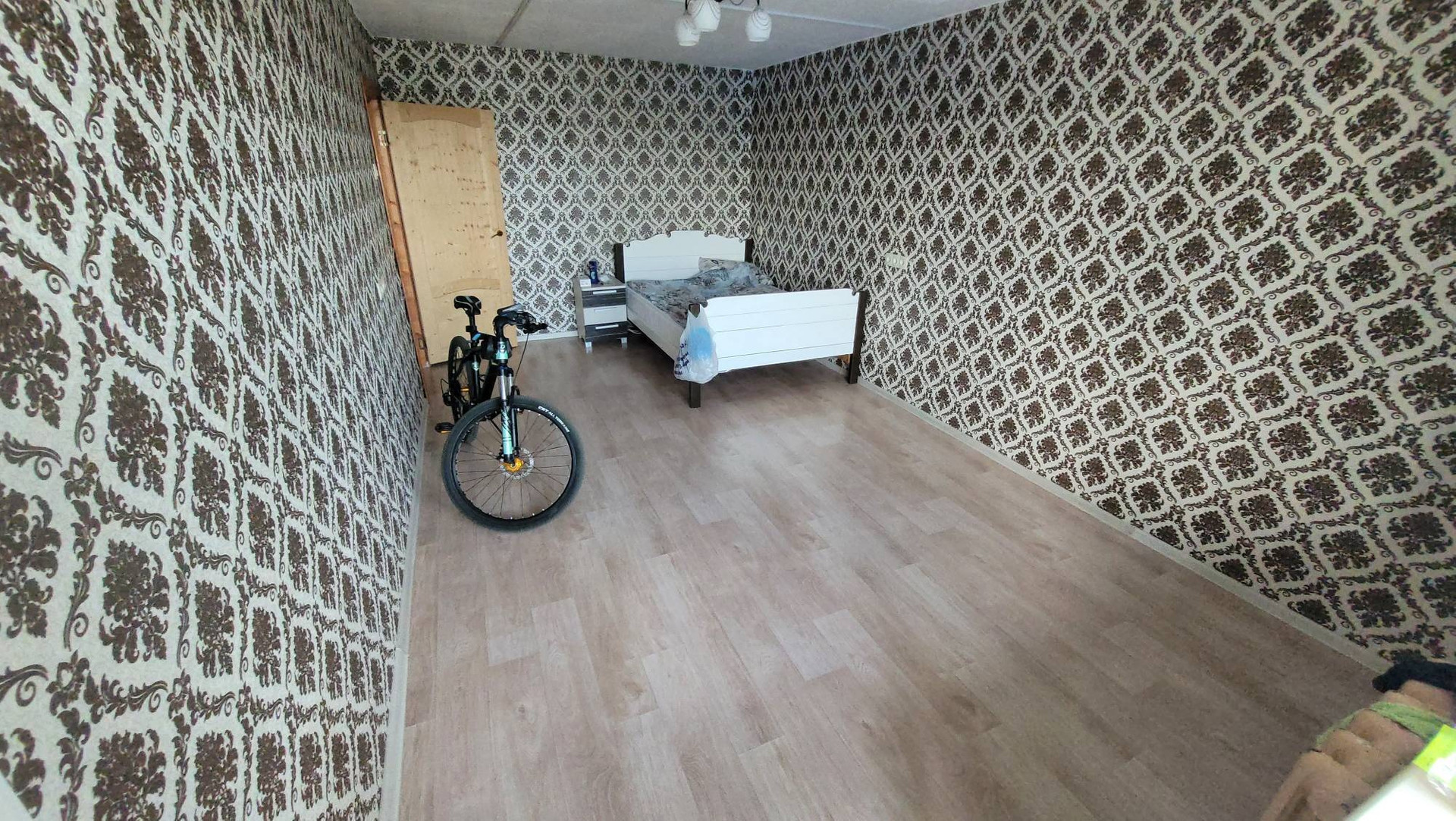 Из мебели: кровать 2-х местная, на кухне ящики.