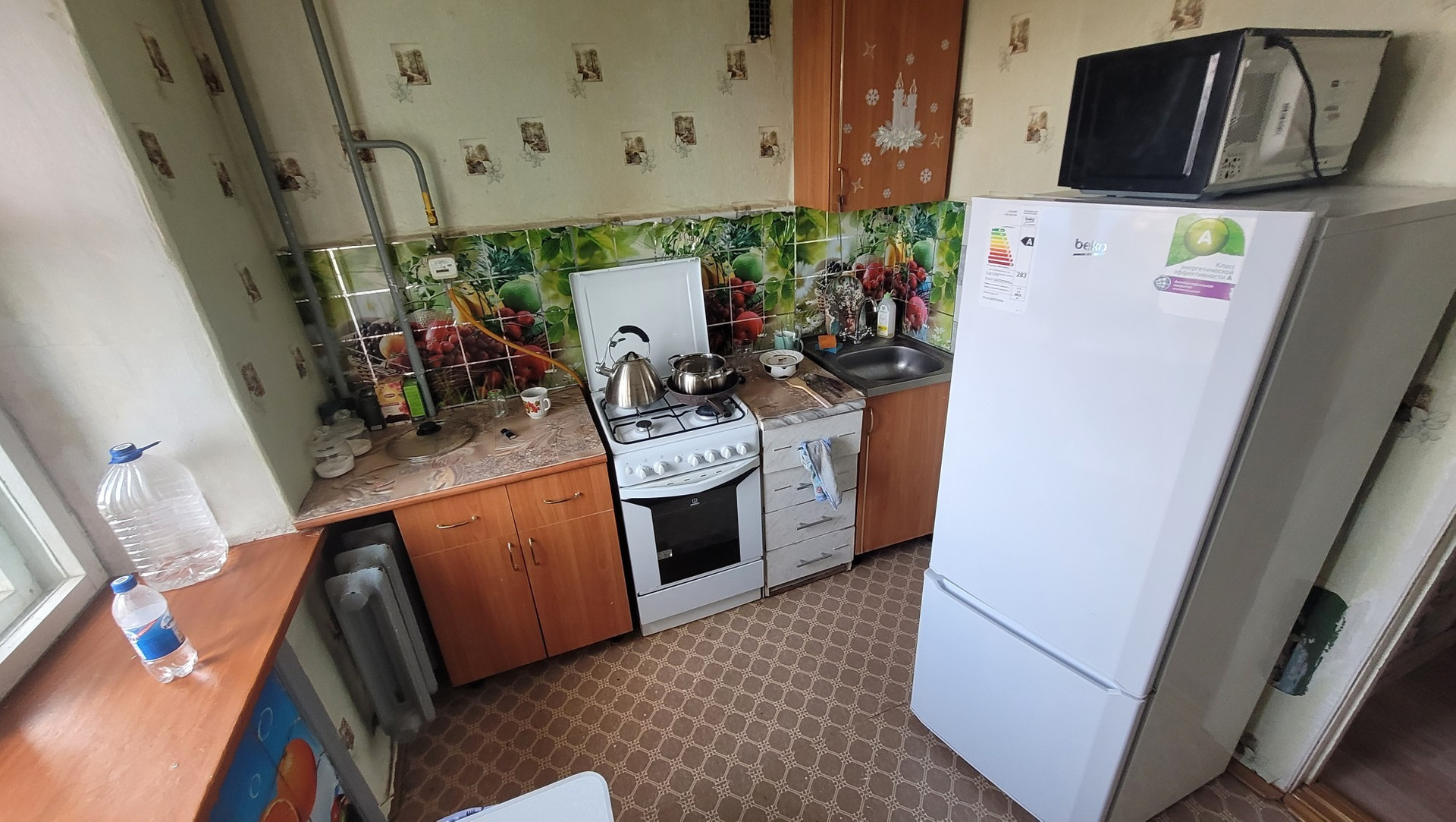 Из техники: газ.плита, холодильник, микроволновка.