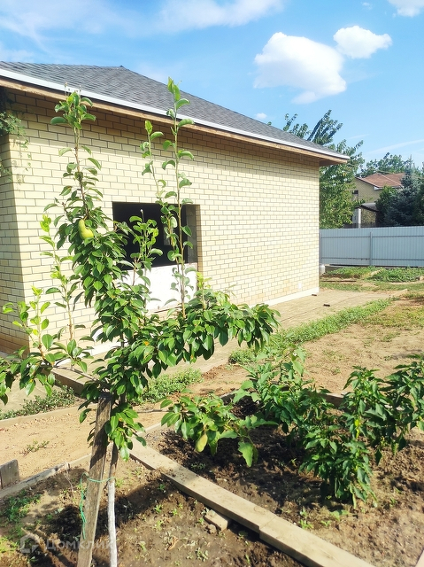 Молодой плодоносящий сад: черешни, груша, яблони, ежевика, клубника.