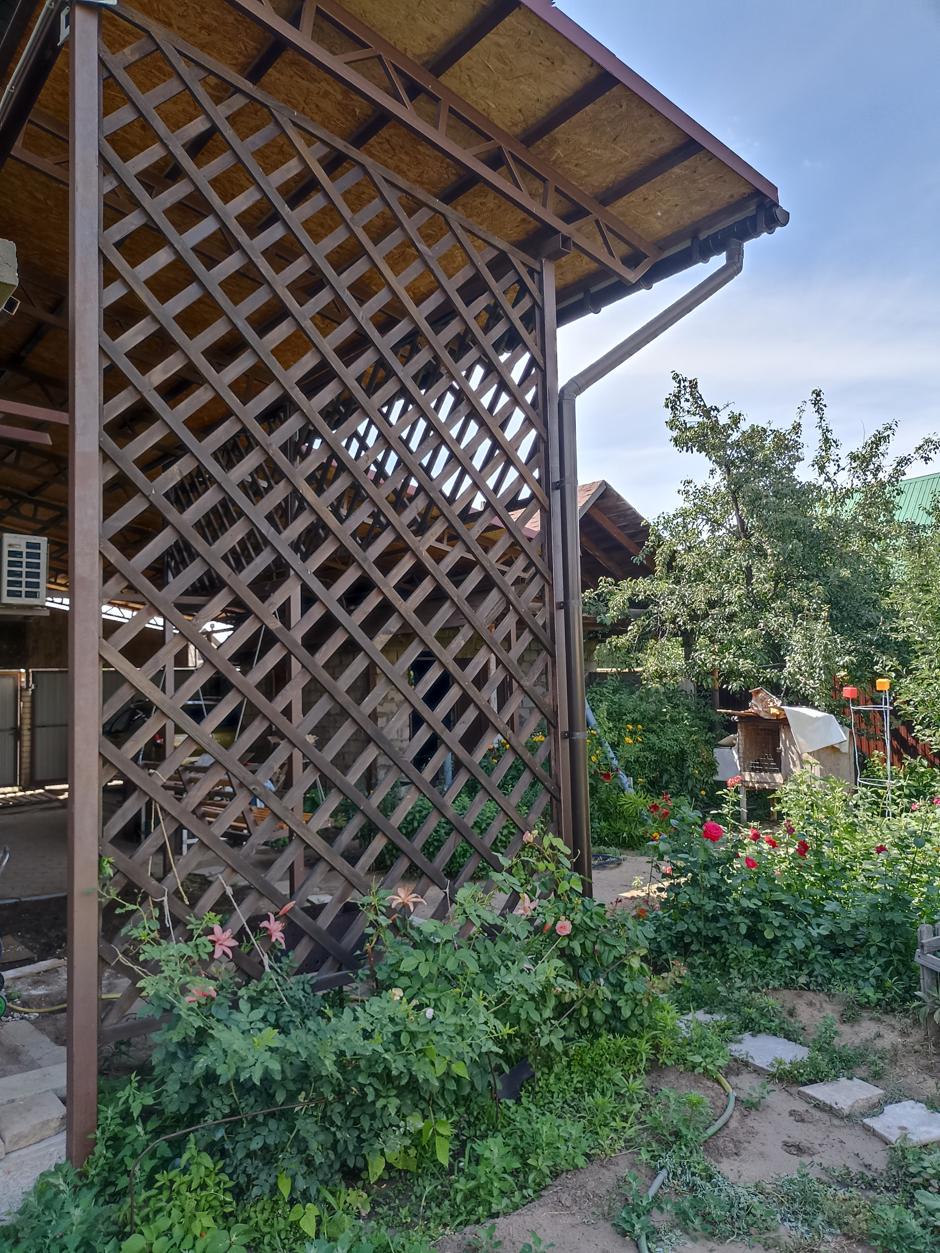 На участке плодовые деревья, розы 5 видов, ежевика, вкусный виноград нескольких сортов.