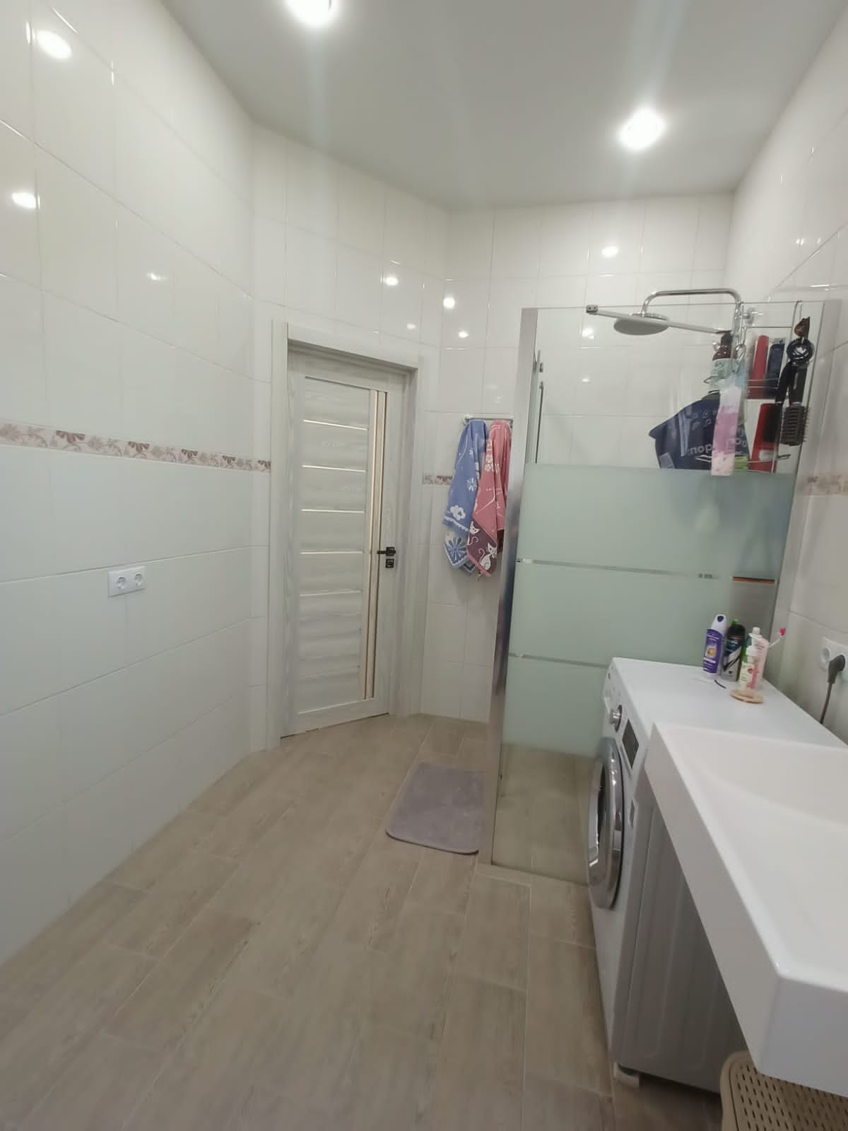 Санузел в доме (душевая кабина, раковина, унитаз, водонагреватель на 50 литров). Отделан кафелем.