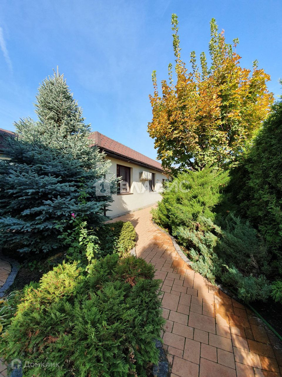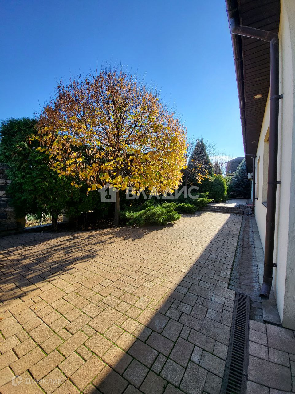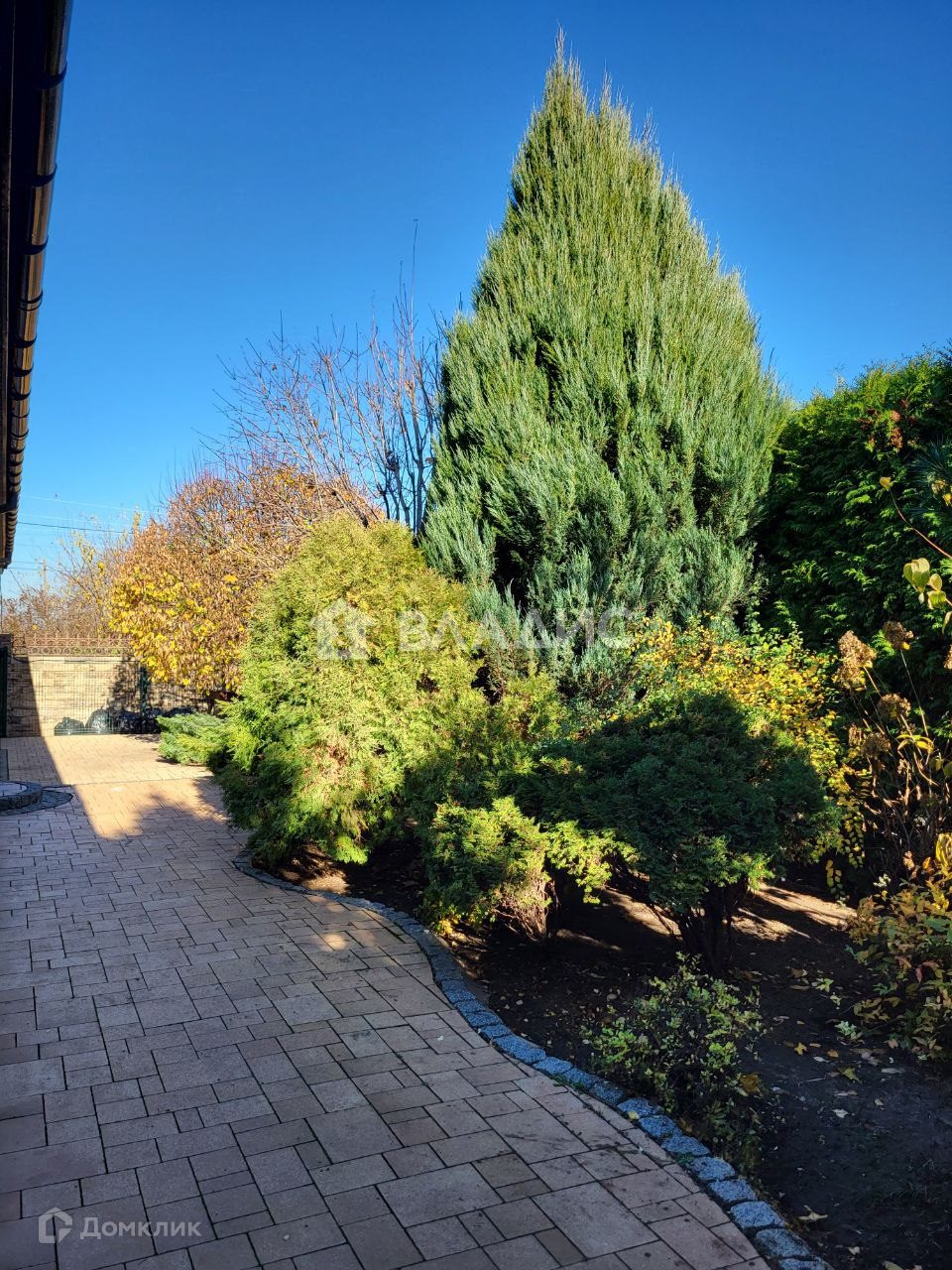 Во дворе ландшафтный дизайн (растут туи, ели, сосны, кустарники можжевельника), беседка с зоной барбекю, дорожки и площадки выложены тротуарной плиткой. По периметру видеонаблюдение, система автоматического уличного освещения.