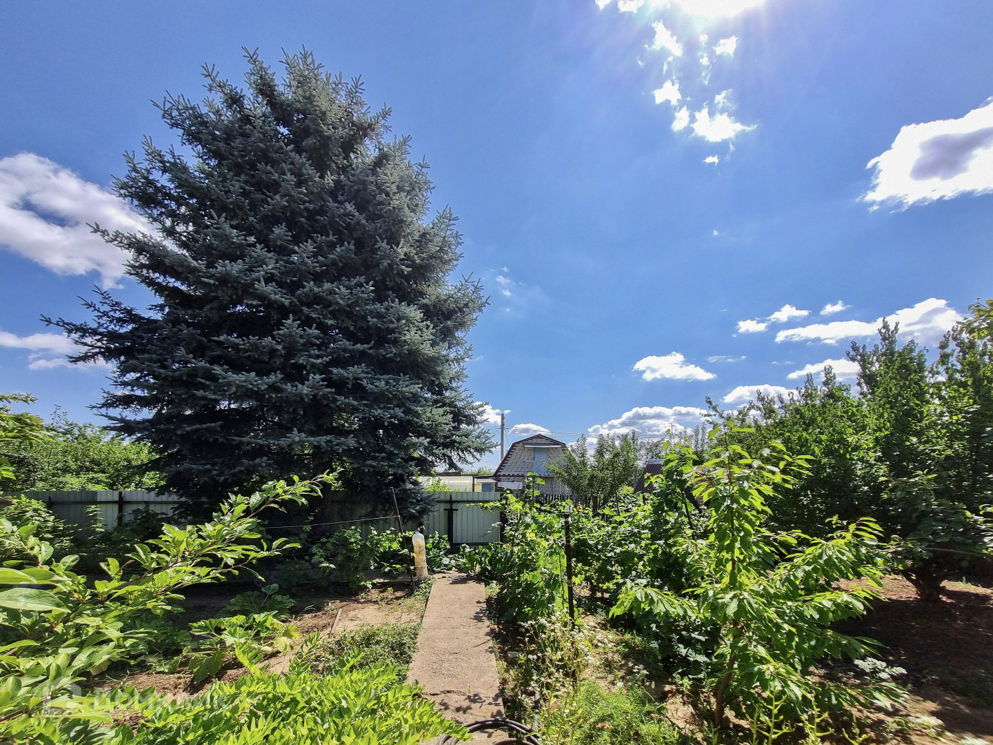 На участке имеется много плодовых деревьев : орех, вишни, яблони, груши, абрикос , боярышник . Клубника, малина, смородина черная, ежевика, сортовой виноград .