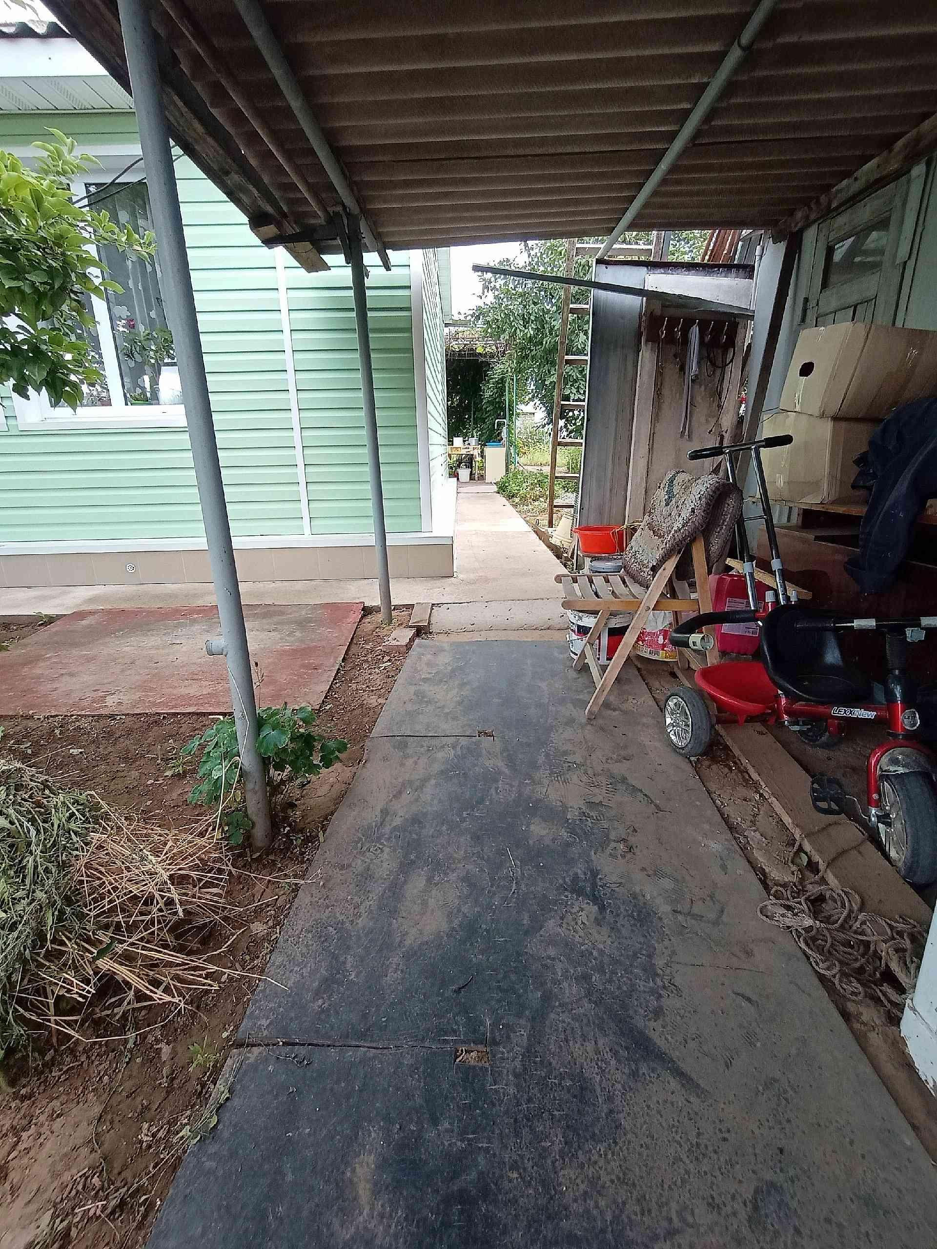 Дом каркасно-щитовой , утеплён и обшит сайдингом, крыша -шифер , не протекает.