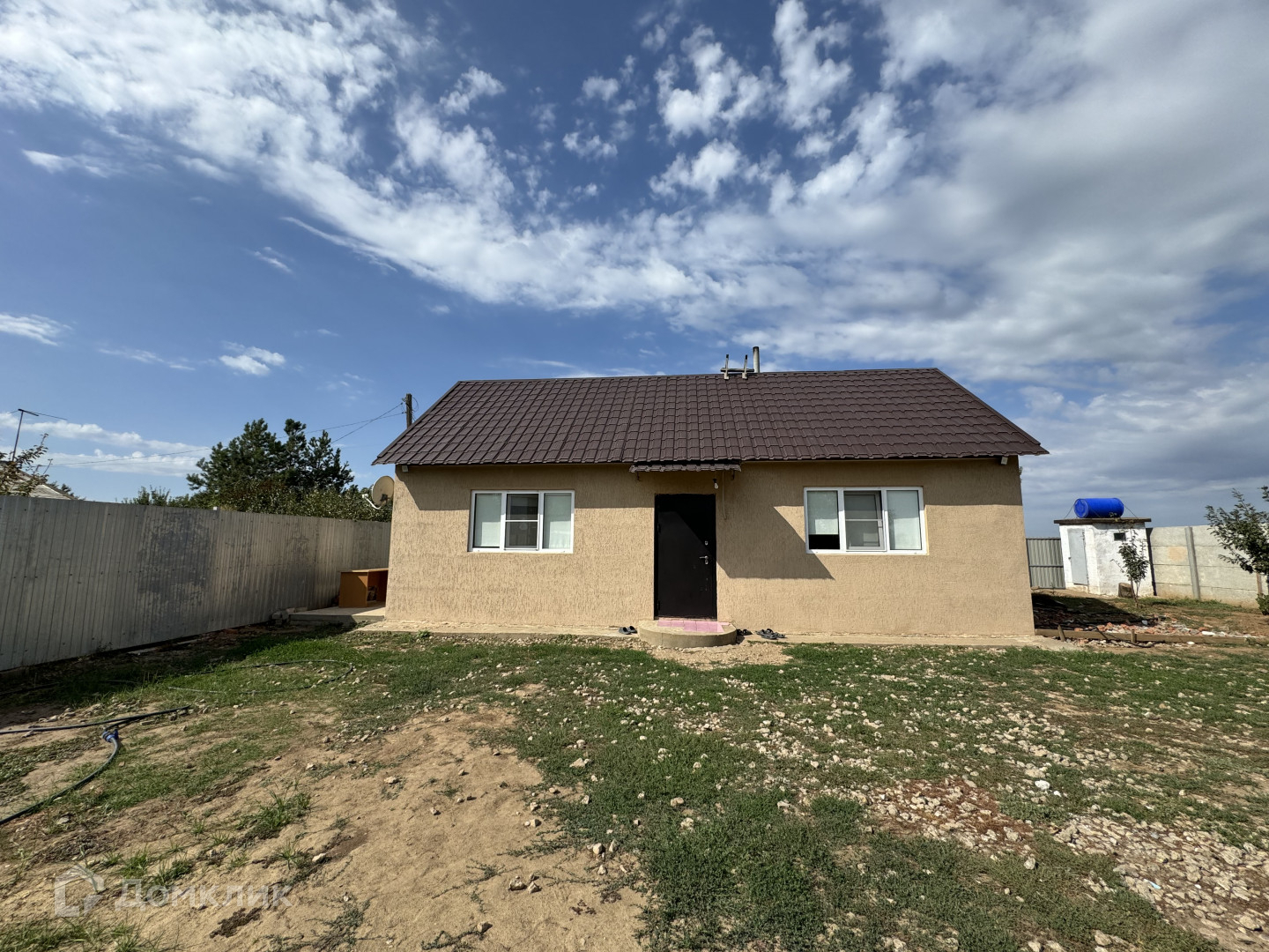 Дом построен из блоков ,утеплён и оштукатурен.