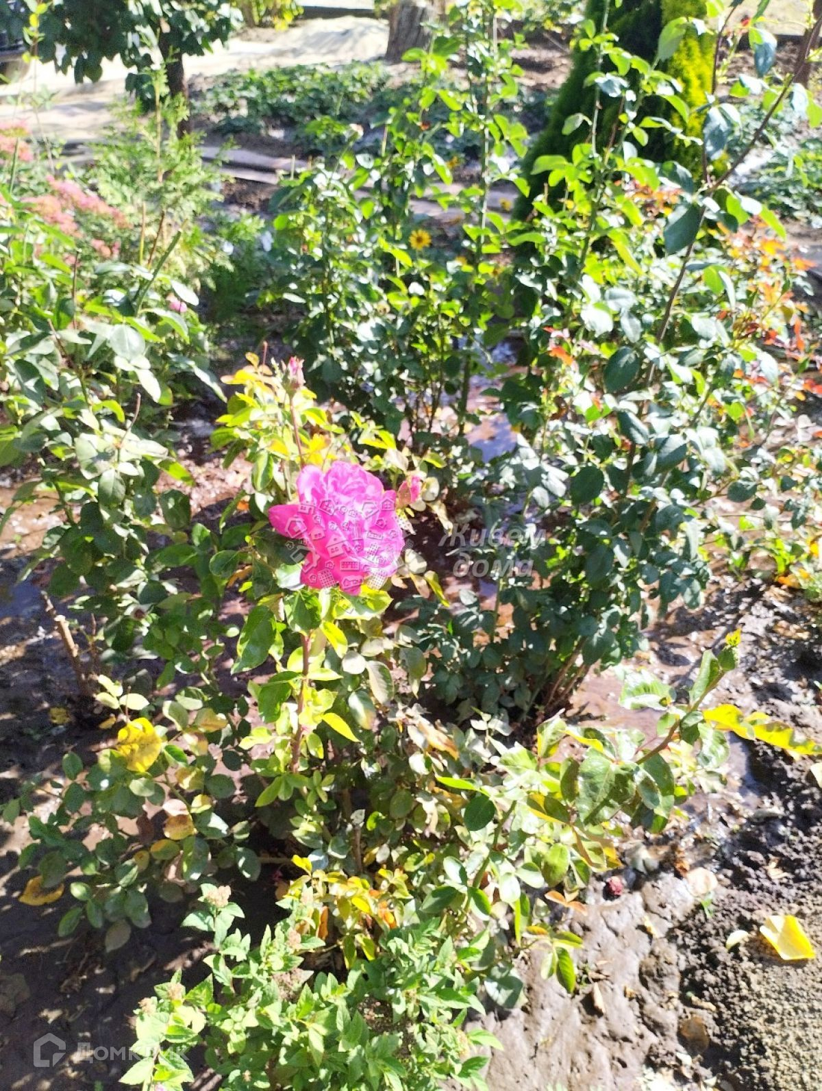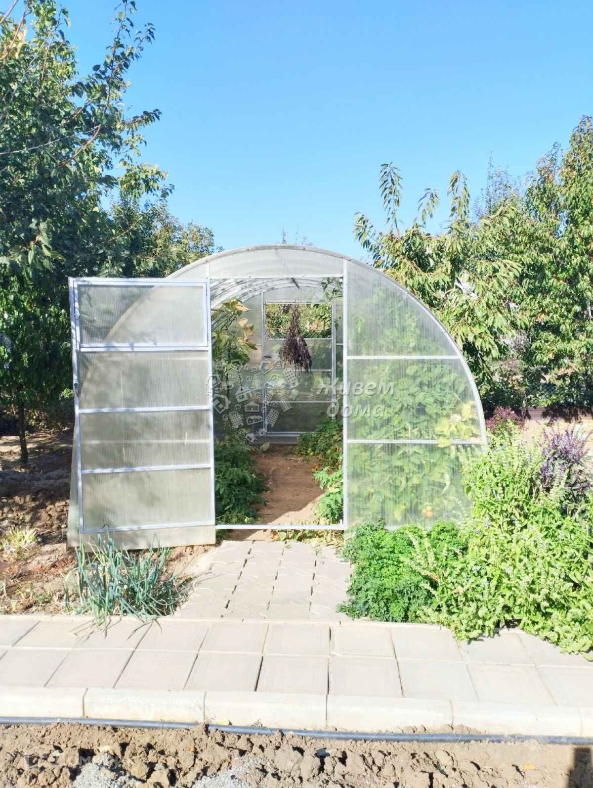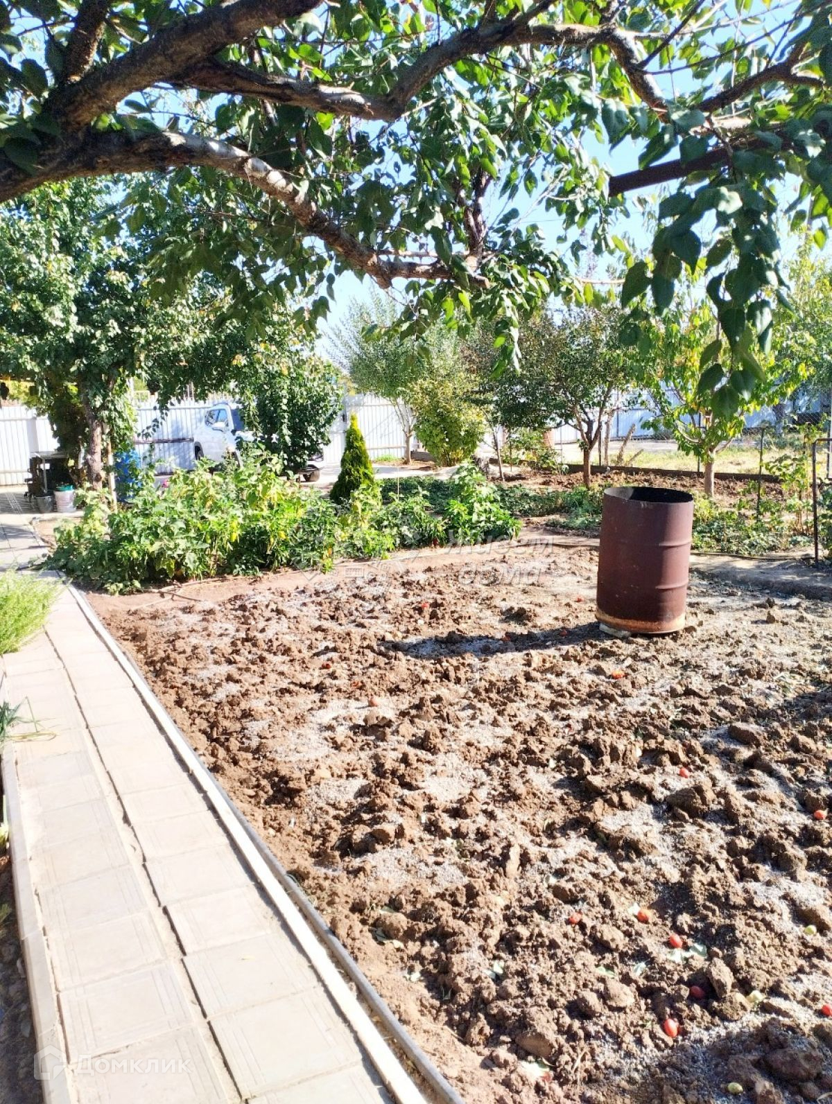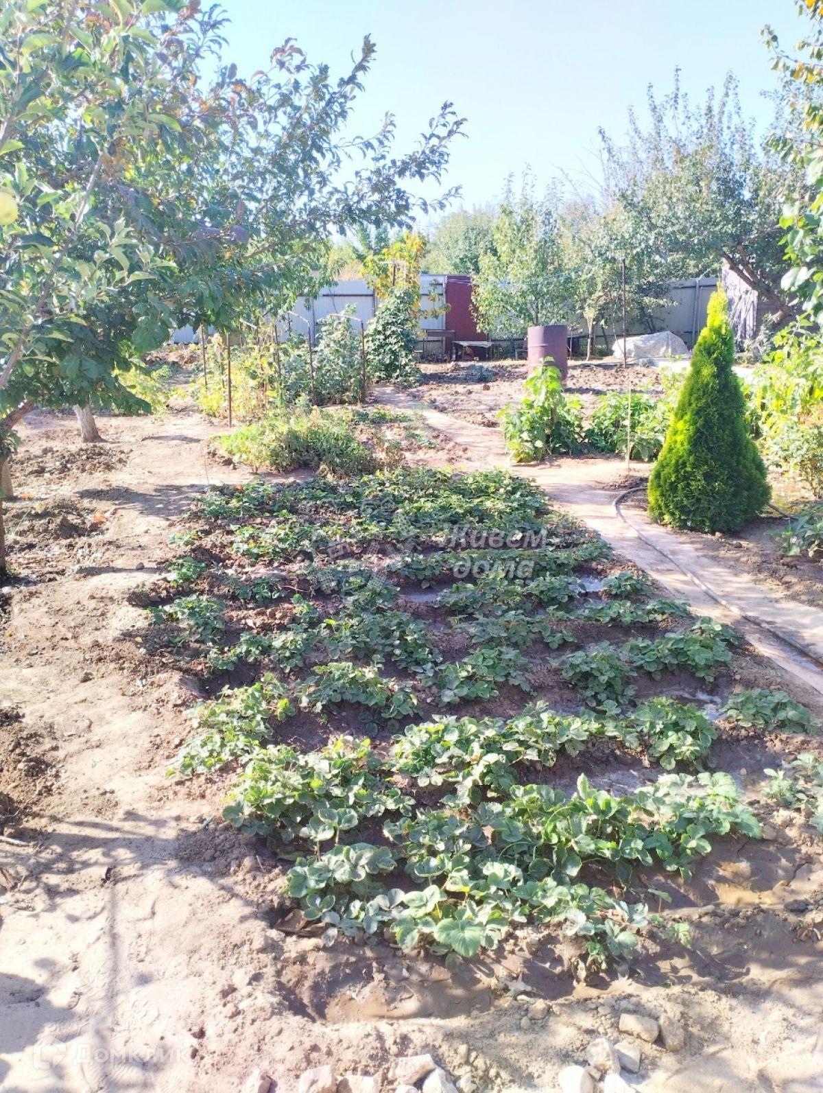 На участке стоит теплица 3/4 метра, сарай, душ, туалет. Дорожки выложены плиткой. Имеется забетонированное парковочное место на 2 машины. Ворота откатные. Забор из профнастила.