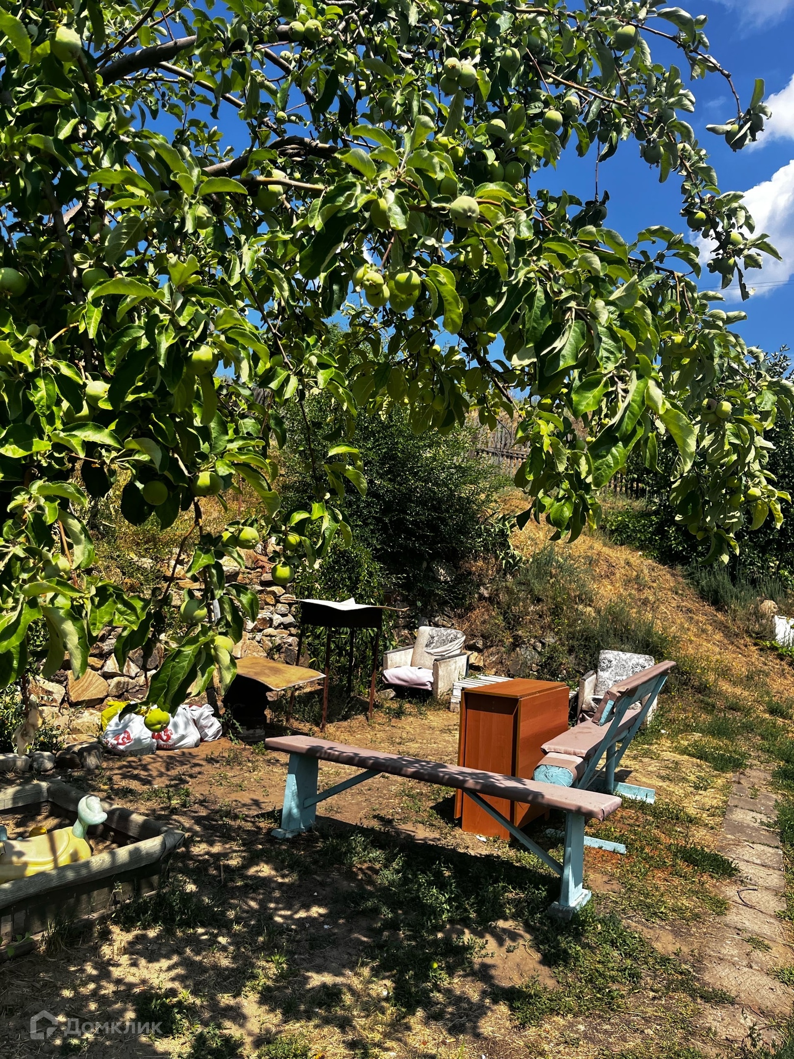 Небольшой огород и беседка для отдыха. Дача находится в 100 метрах от метро и Леруа Мерлен.