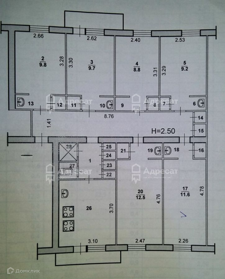 Высота потолков 2.5 м