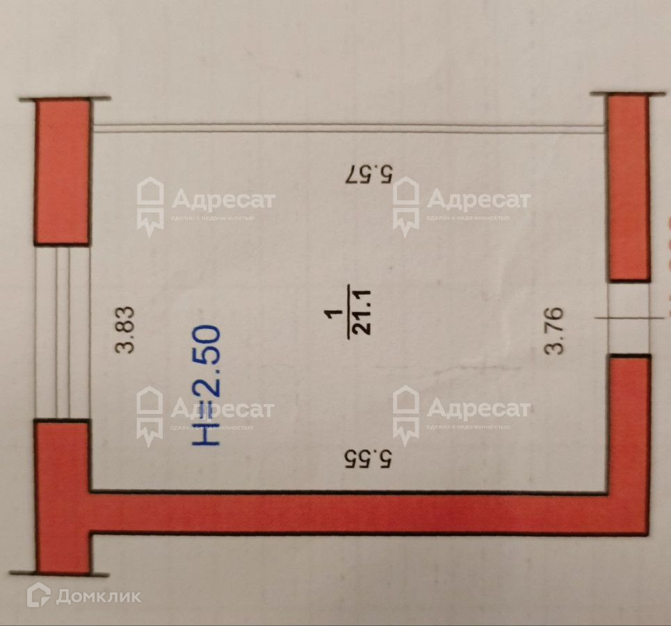 Общая площадь 21.1 м2