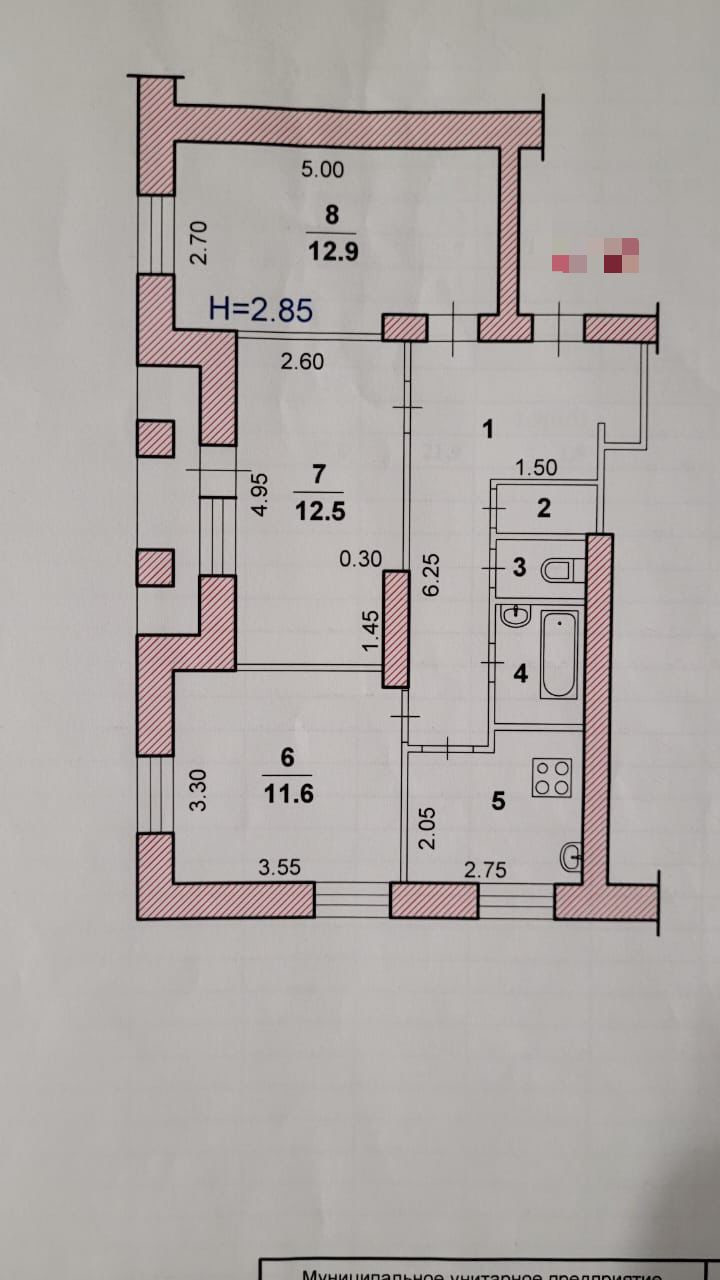 Высота потолков 2.85 м