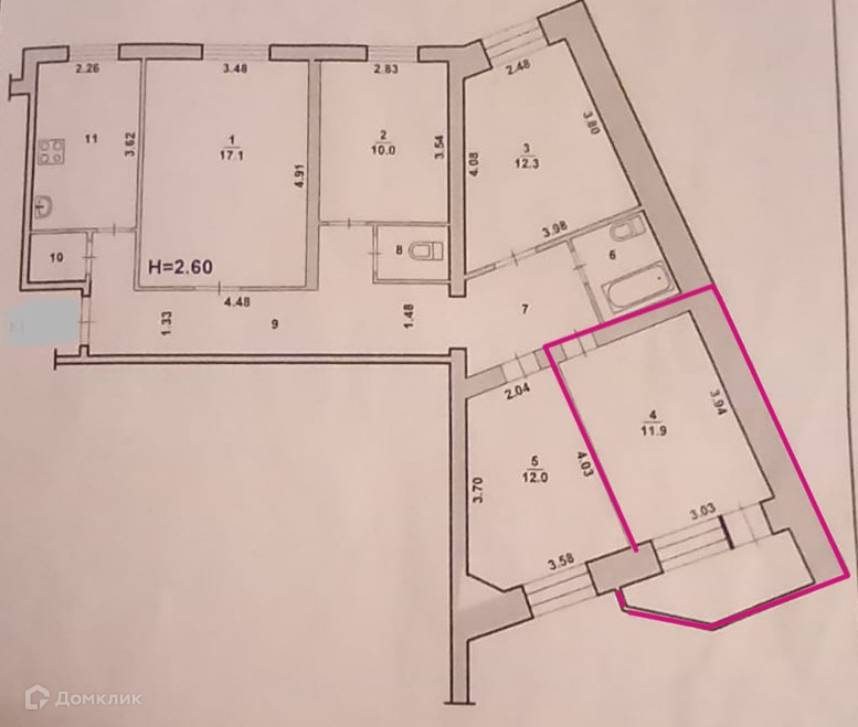 Высота потолков 2.6 м