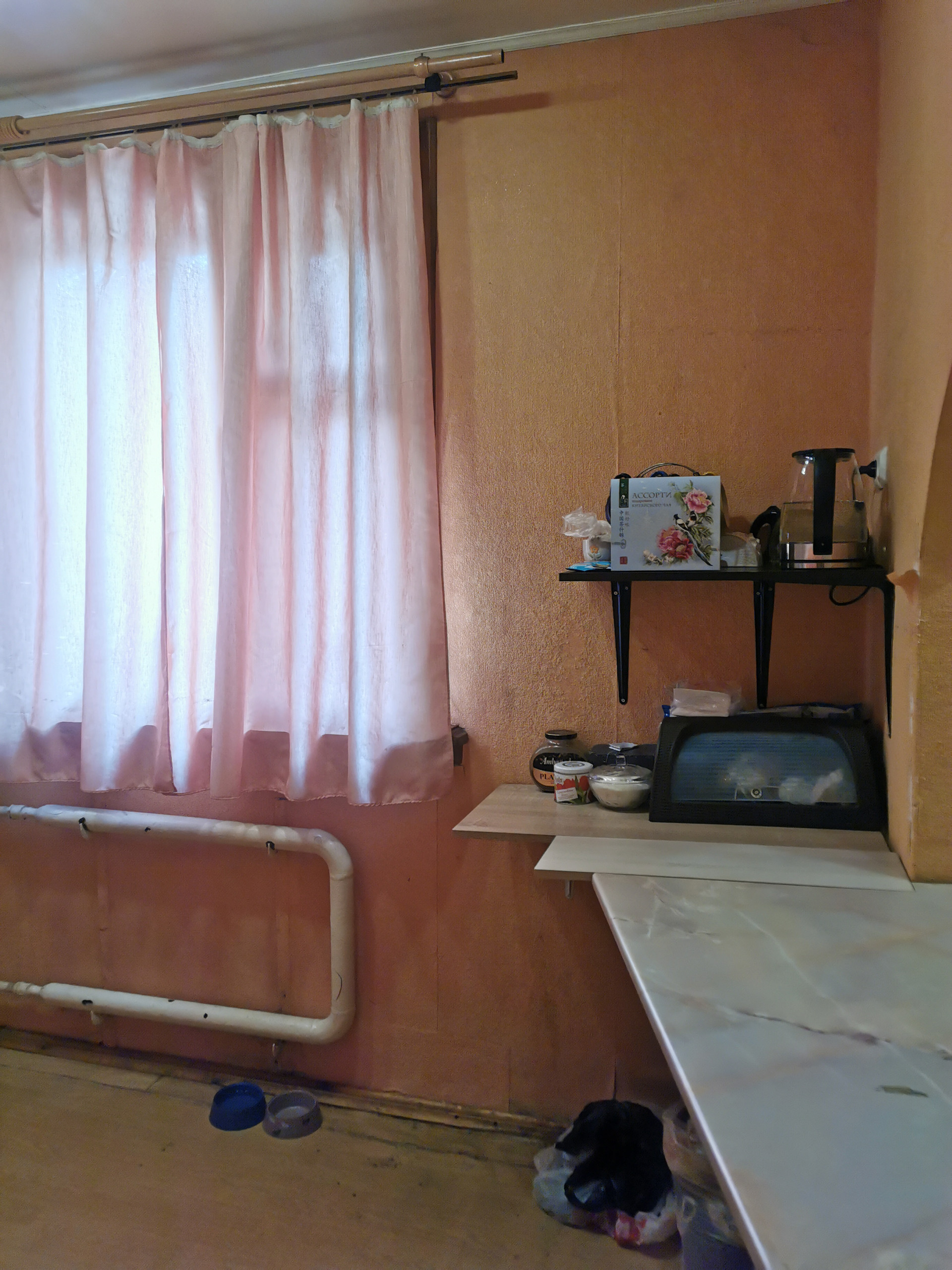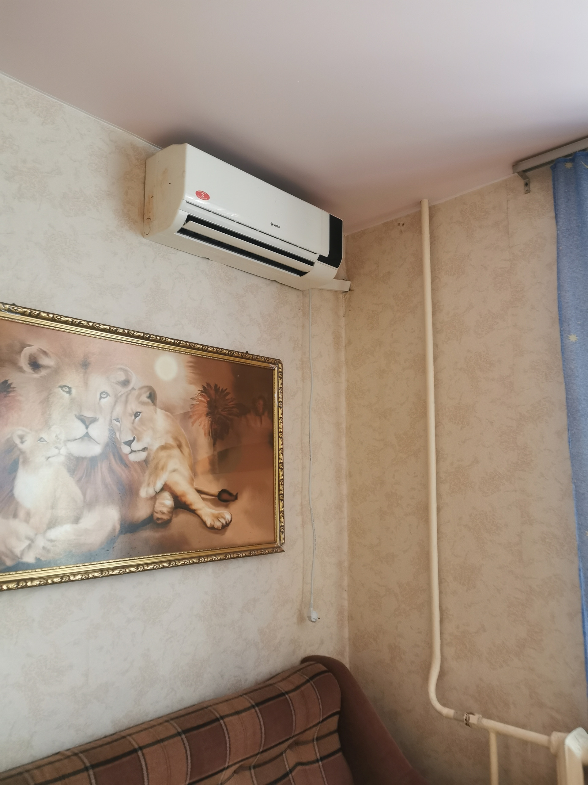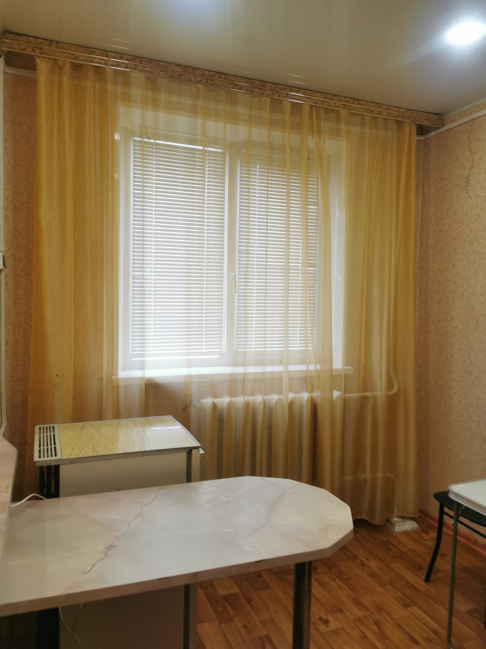 Потолок - обои и панели. Пол - линолеум. Два кондиционера в наличии. При продаже остаются.