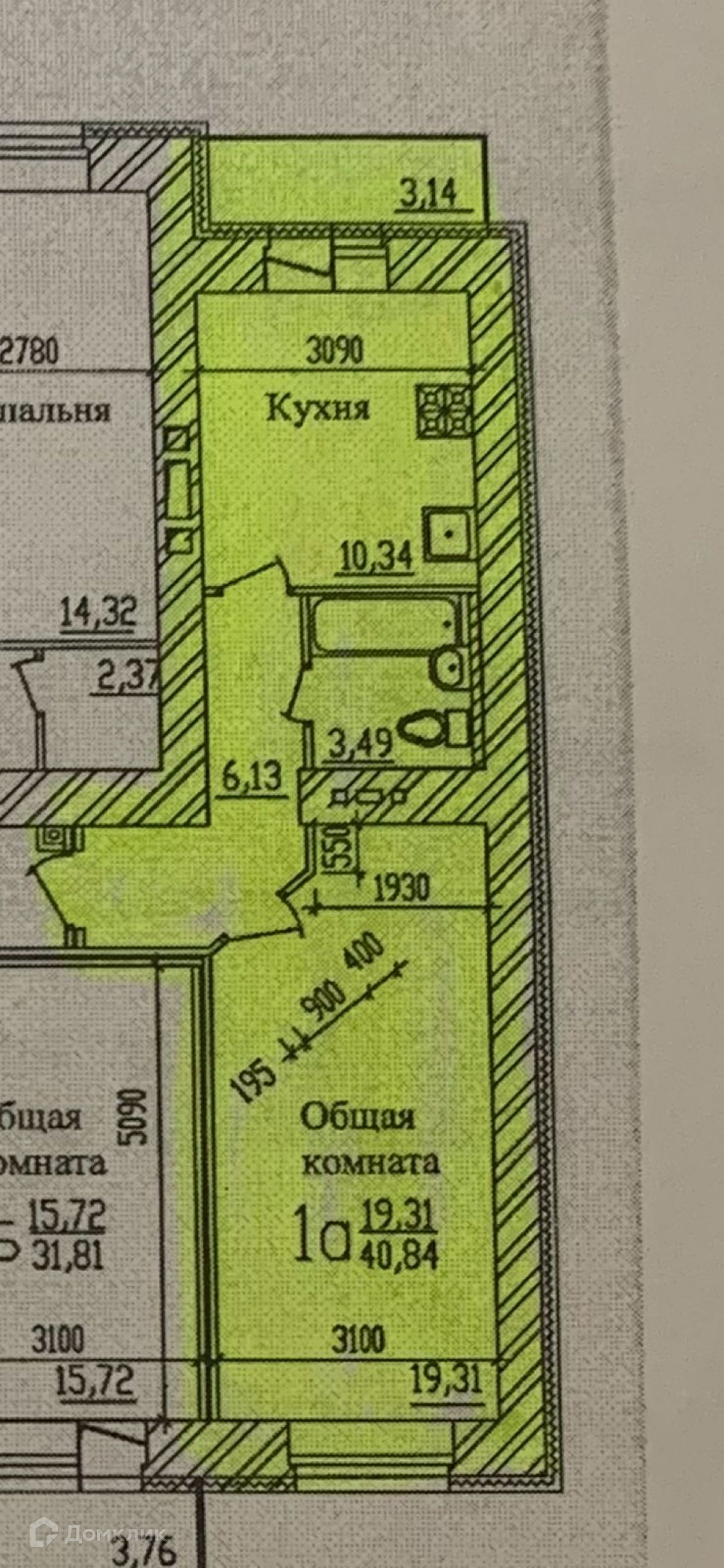 Жилая площадь 19.31 м2
