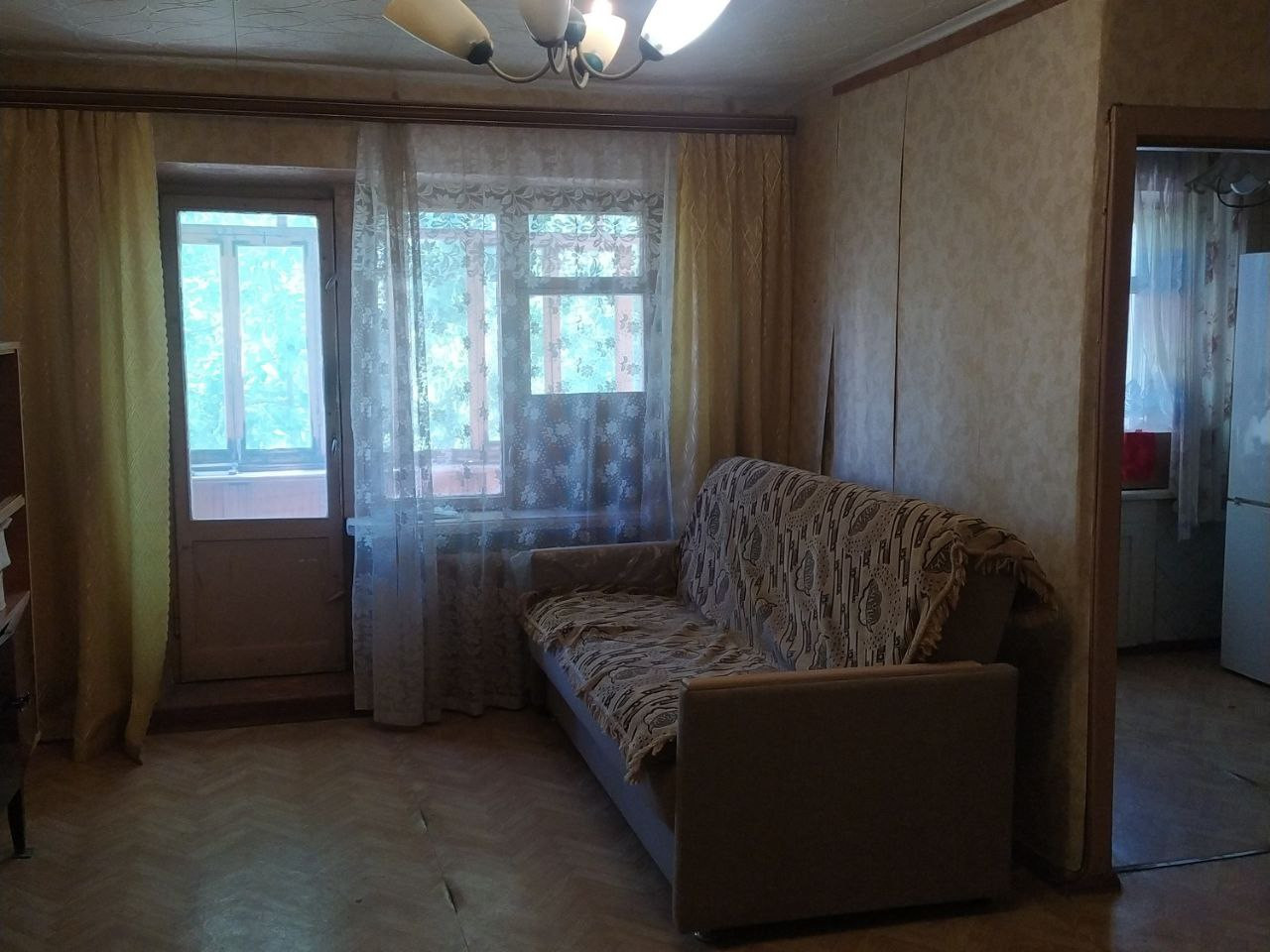 Квартира на разные стороны, в середине дома: 1 окно на улицу, и 2 окна и балкон во двор.