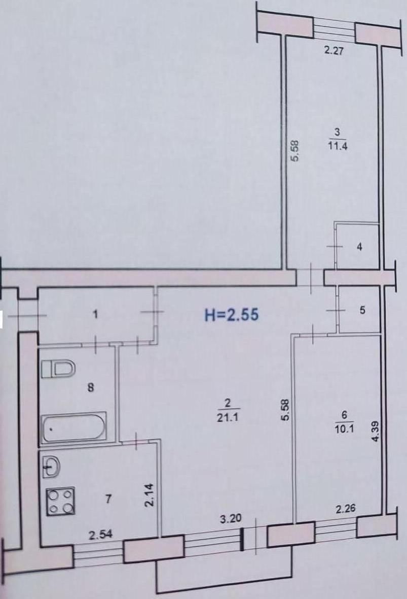 Площадь кухни 5.4 м2