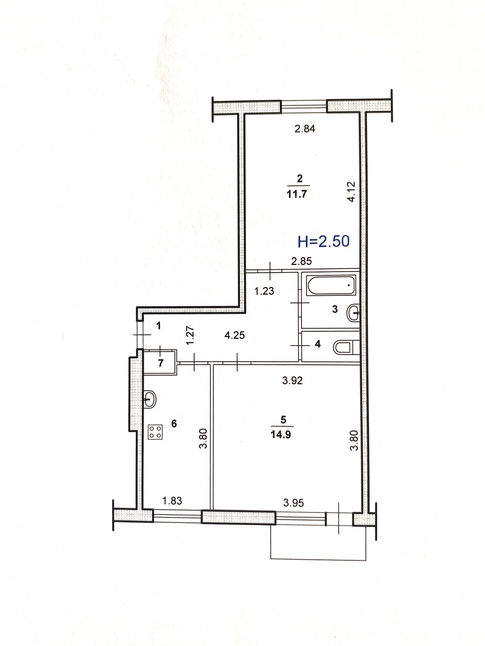 - Изолированные комнаты 14.9 и 11.7 кв.м. окнами ориентированы на разные стороны.