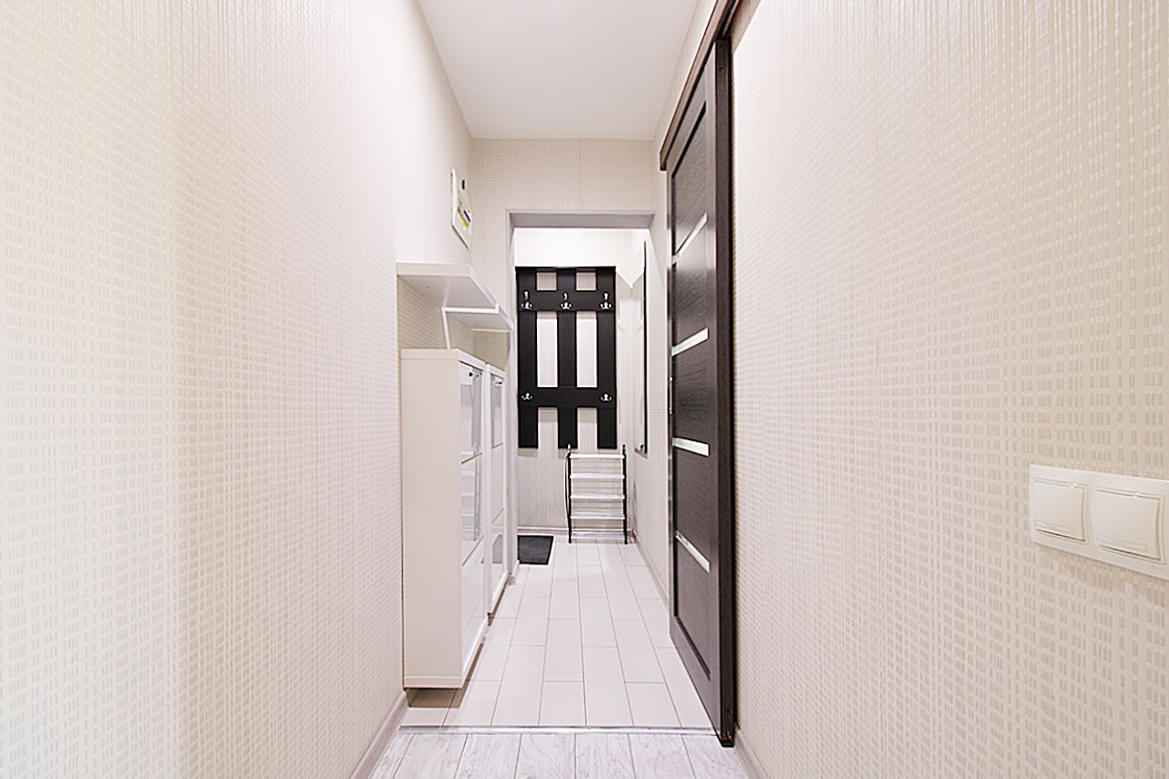 В квартире выполнен дизайнерский ремонт в спокойных светлых тонах с использованием качественных материалов. Выровнены стены, заменена проводка и водопроводные трубы, установлены пластиковые окна, напольное покрытие- ламинат и плитка. В коридоре и ванной комнате функция теплого пола. Пространство удобно зонировано, есть вместительный шкаф-купе, в коридоре настенные обувницы.