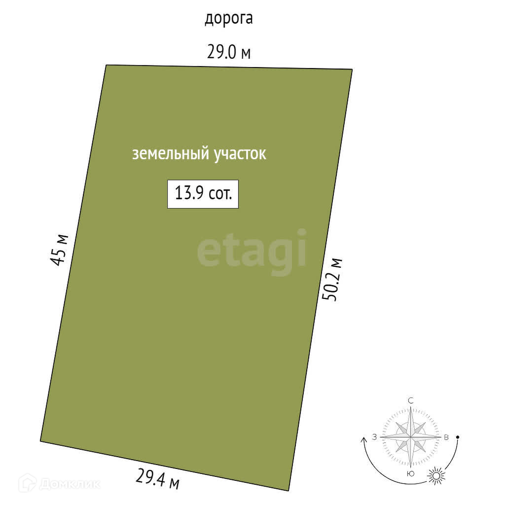 Площадь участка 13.9 сот.