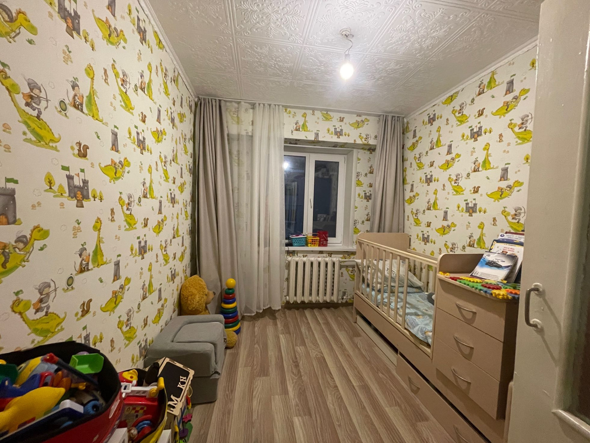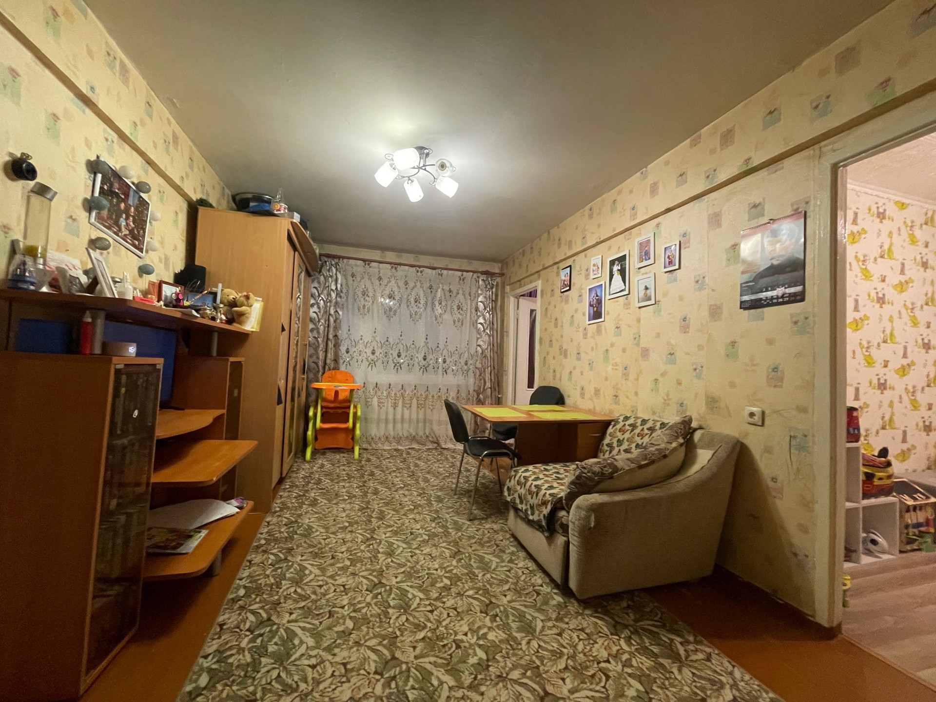 Продается теплая четырехкомнатная квартира. Одна комната отдельная, во вторую комнату отдельный вход, через которую вход в две смежные комнаты. В квартире все останется, что на фото, кроме телевизоров, компьютеров и личных вещей. Окна частично пластик, частично дерево. Пол линолеум. Долгов по коммунальным услугам и капитальному ремонту нет. Имеются счетчики на воду. Рядом магазины, рынок, торговые центры, детский сад, школа, больница.  Торг.