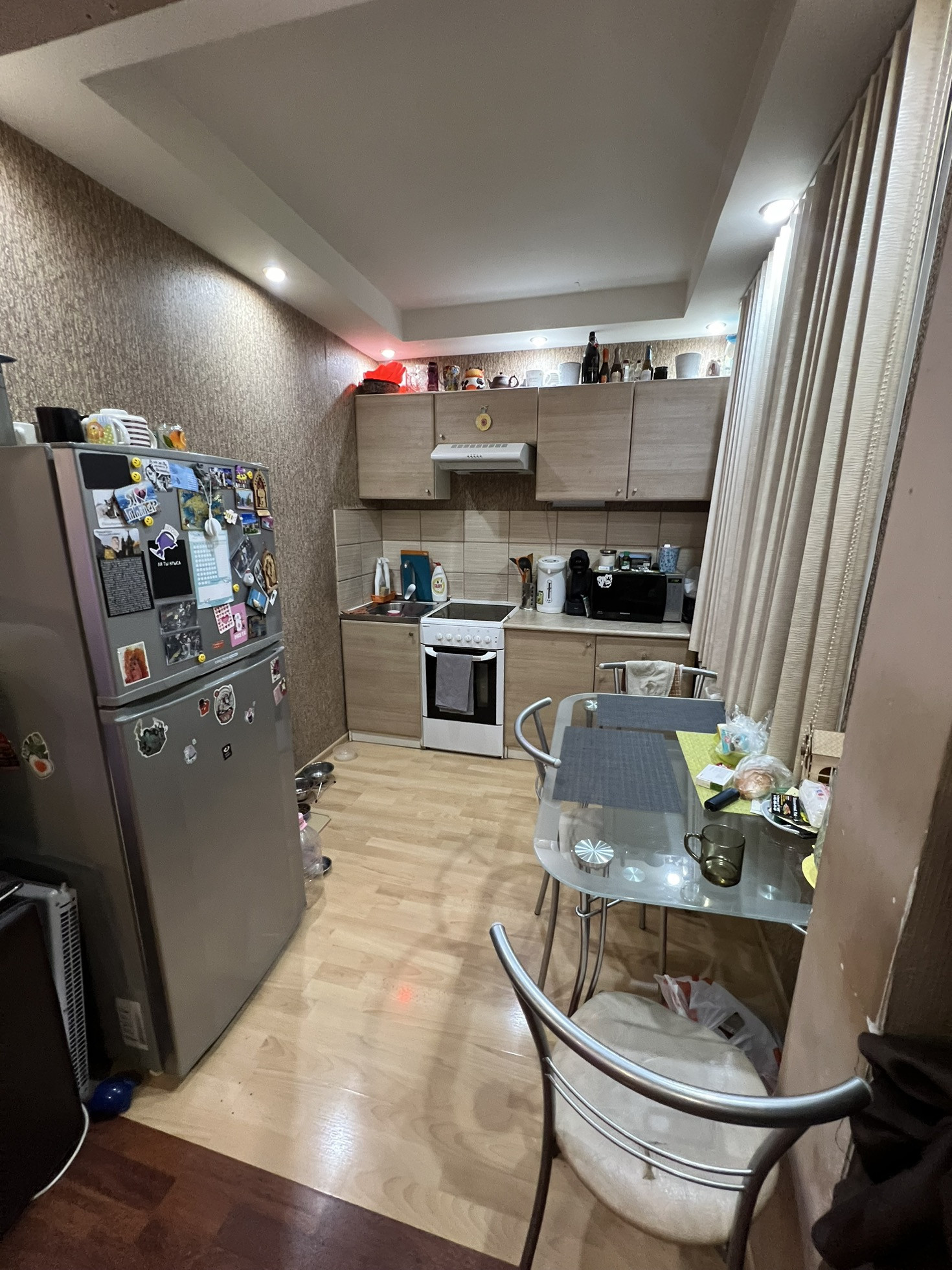 Теплая,уютная квартира.Остается все для проживания и даже больше.Прописанных нет,собственник 1.С квартиры забирается только телевизор и личные вещи.