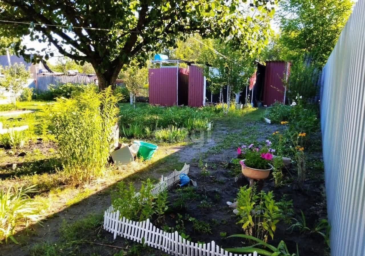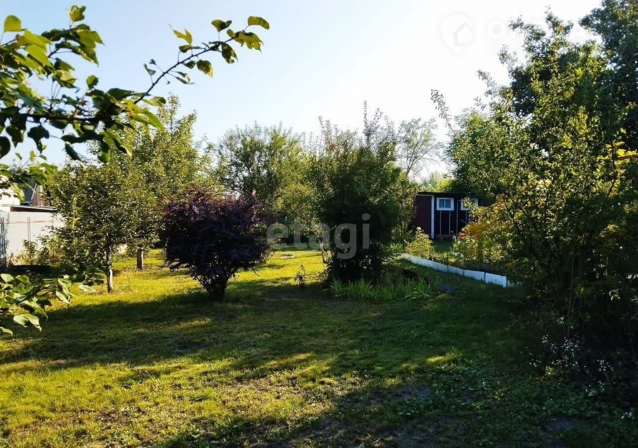 Забор из профлиста с 3-х сторон и с одной стороны деревянный, есть ворота для въезда автомобиля и место для стоянки. На участке плодовые деревья, кустарники, цветы многолетники. Есть место и для отдыха (например, поставить бассейн, мангал, качели), и для огорода. У калитки большой куст сирени.