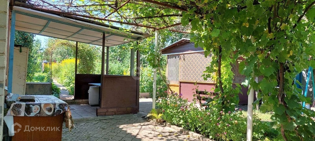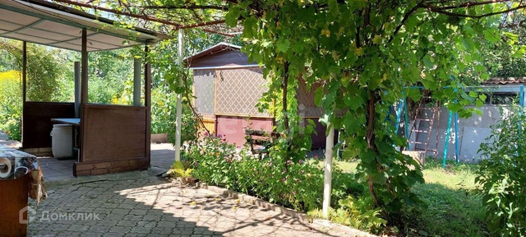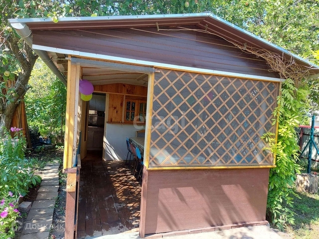 Во дворе беседка с летней кухней, летний душ,плодоносящие деревья и кустарники.