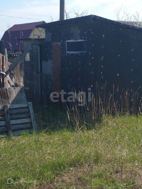 На участке общей площадью 6 соток растут плодовые деревья, огорожен сеткой рабицей, есть ворота и металлическая калитка. На участке есть деревянный сарай, металлический гараж, душ, туалет, вода центральная.