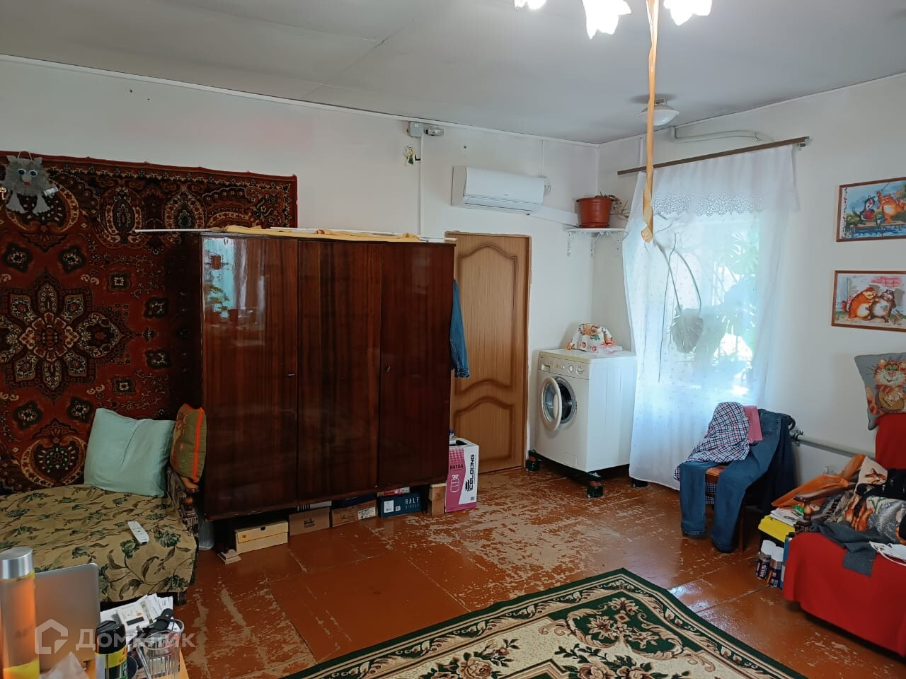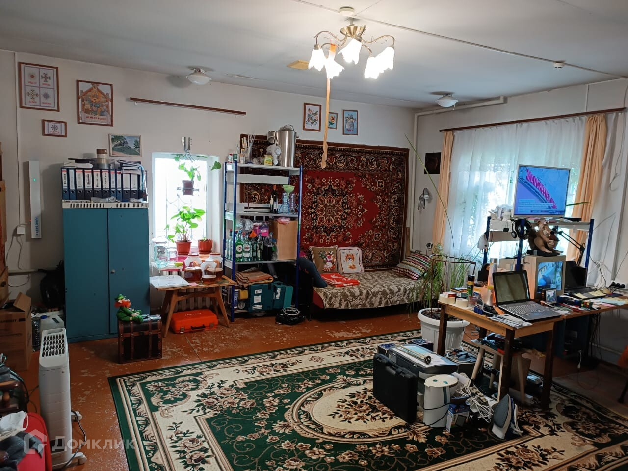 - Первый этаж: одна большая комната 36кв.м, кухня 10 кв. м, раздельный санузел, в плитке старого образца и кладовое помещение;