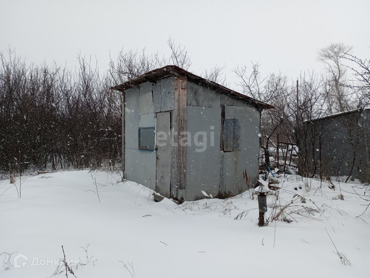 Есть бытовка с печкой, которую вполне реально переоборудовать в баню. Есть каркас теплицы.