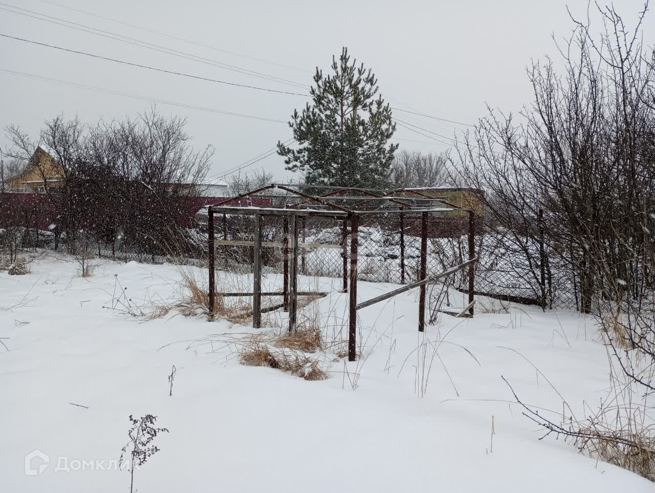 Контур участка огорожен сеткой-рабицей.