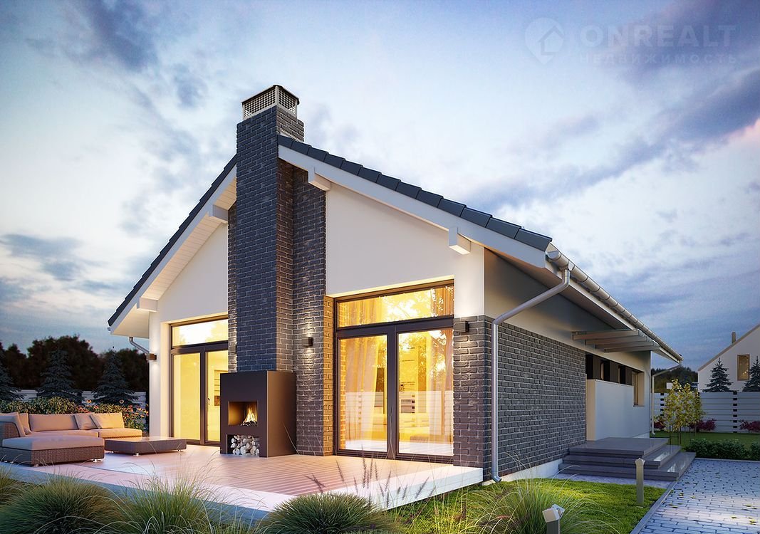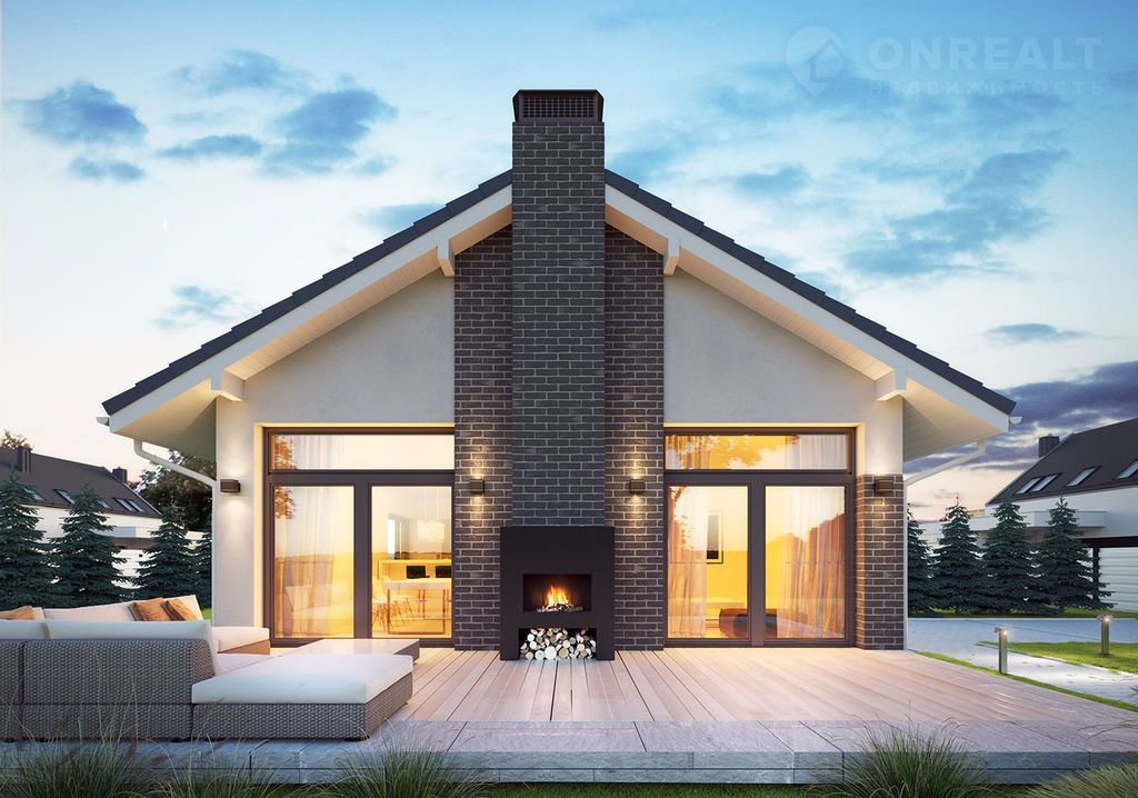 Планировка включает 3 спальни и просторную кухню-гостиную, большой холл, с\у, с возможностью увеличить площадь дома еще на 45-50м.кв.