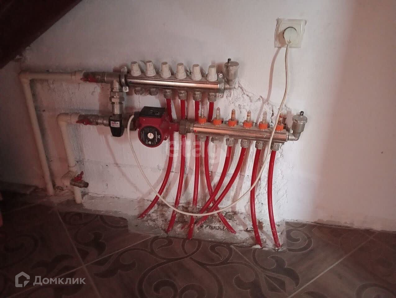 Выполнен водяной теплый пол по коридору первого этажа, в с/у первого этажа, кухне-гостинной. По теплому полу уложен качественный керамогранит. В комнатах первого этажа уложен ламинат по утолщенной подложке.