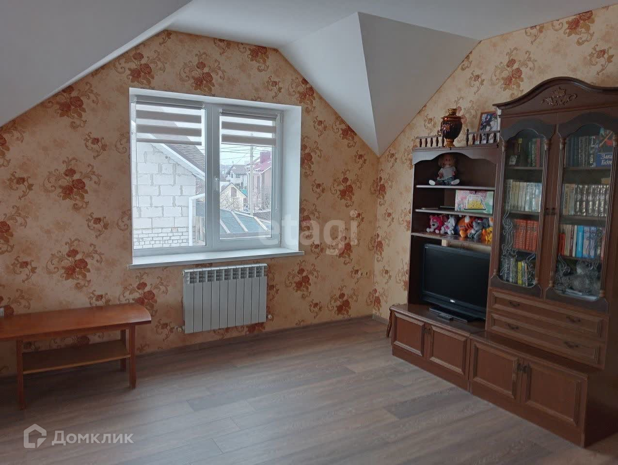 На втором этаже просторная гостиная с хорошим видом, которая при необходимости легко разделяется на две комнаты и коридор гипсокартонными или кирпичными перегородками. Так же на втором этаже большая спальня 22,8м2 с видом во двор, с/у 6,1м2,