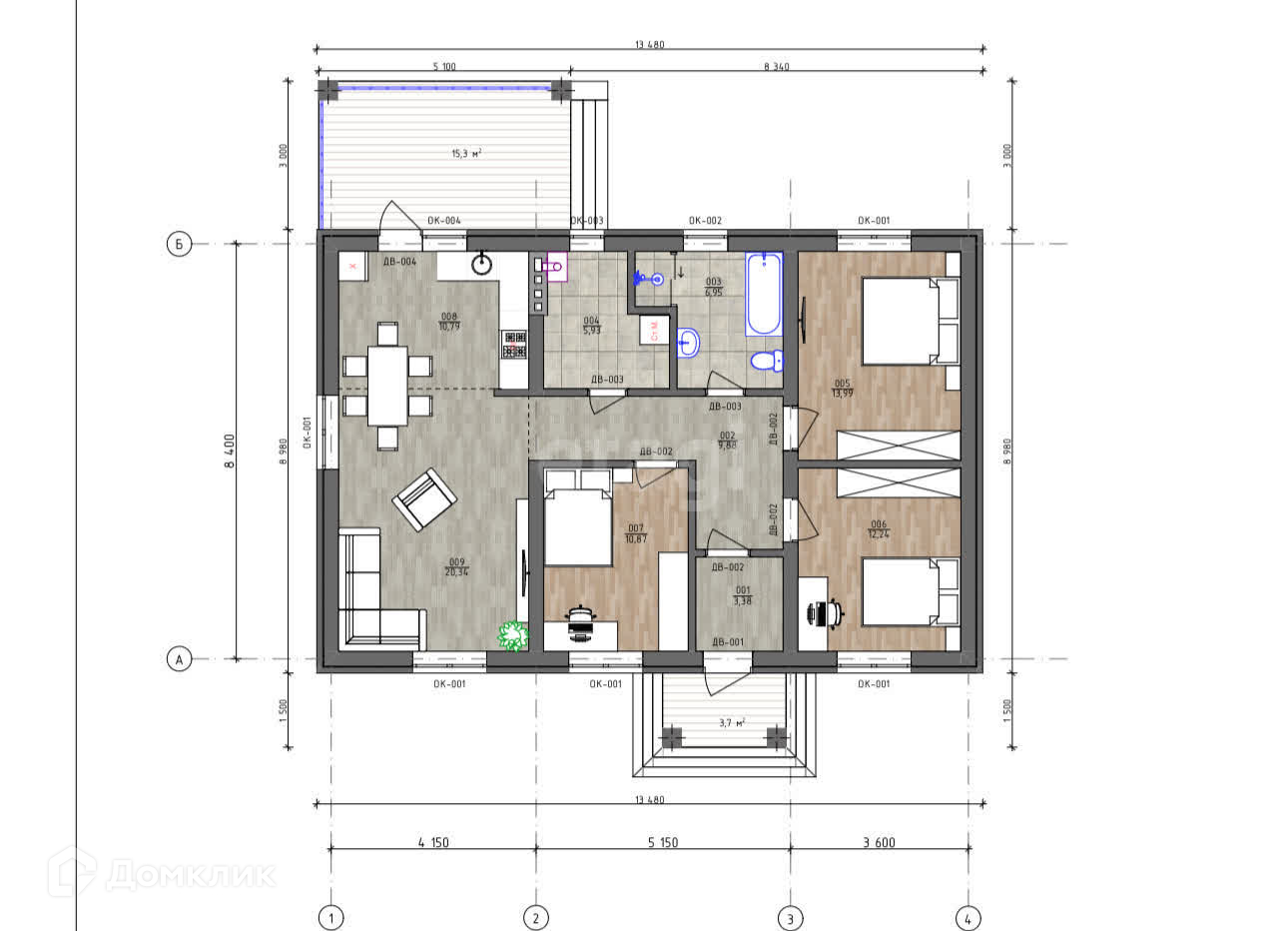 Продаётся новый 1-этажный дом в стадии строительства! Общая площадь 94,4кв.м., жилая 65кв.м. Очень удобное местоположение - Советский район мр Подклетное: все соседние дома и коттеджи - новой застройки, поэтому у вас будут современные и порядочные соседи! Райоон активно застраивается и развивается, есть выезды на трассу в направлении Нововоронежа, Масловки и Александровки. Дом строится на участке, который никогда не затапливается, поэтому вы можете быть уверены, что ваш дом всегда будет защищен от непогоды. Внутри дома вас ожидает уютная и продуманная планировка, и она идеально подходит для молодой семьи: 3 отдельные комнаты и кухня-гостинная с выходом на террассу (под крышей). Санузел совместный просторный. Все коммуникации, включая газ и электричество, - будут подключены, и будет предчистовая отделка, поэтому вы сможете начать ремонт сразу после покупки и создать дизайн вашей мечты. Натяжной потолок - в подарок! Участок правильной прямоугольной формы! Парковочные места есть всегда! В непосредственной близости есть школа, детский сад, магазины и остановка общественного транспорта. Возможна покупка СЕМЕЙНУЮ ипотеку или использование материнского капитала. Мы готовы рассмотреть различные варианты оплаты. Кроме того, мы можем помочь вам с оформлением ипотеки, если вам потребуется. Позвоните нам прямо сейчас!