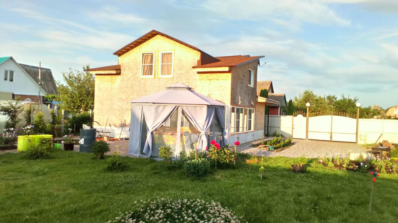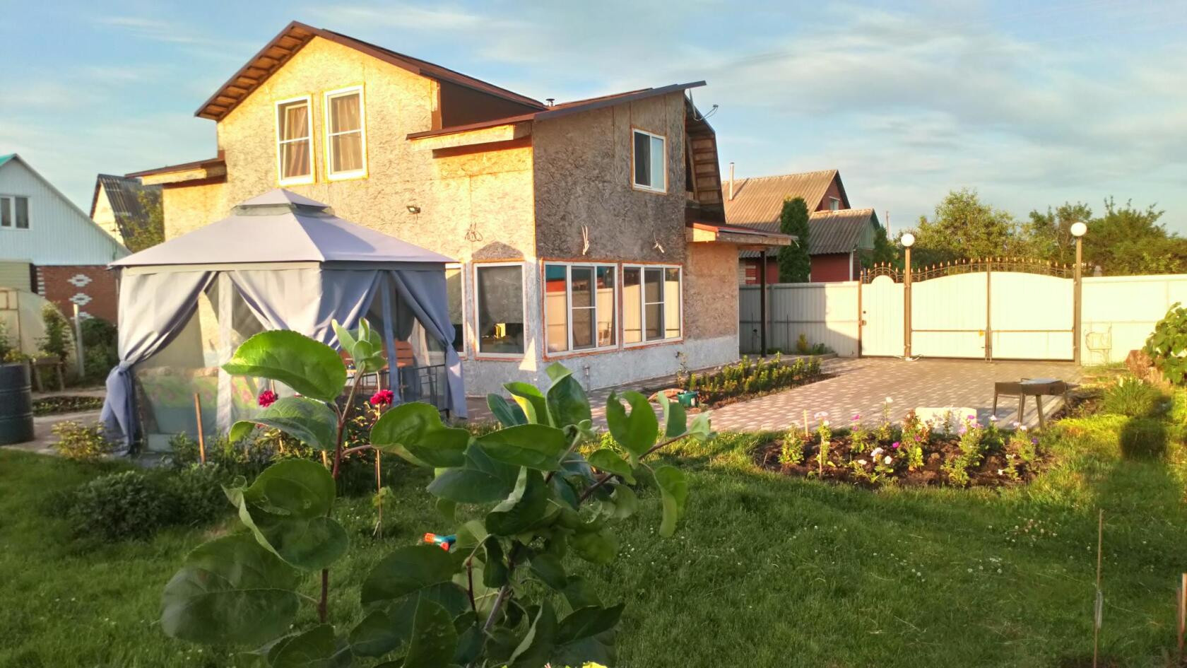 Делаю газ, вода скважена со всей развязкой по дому, напор хороший. На участки плодовые деревья, многолетнее цветы.