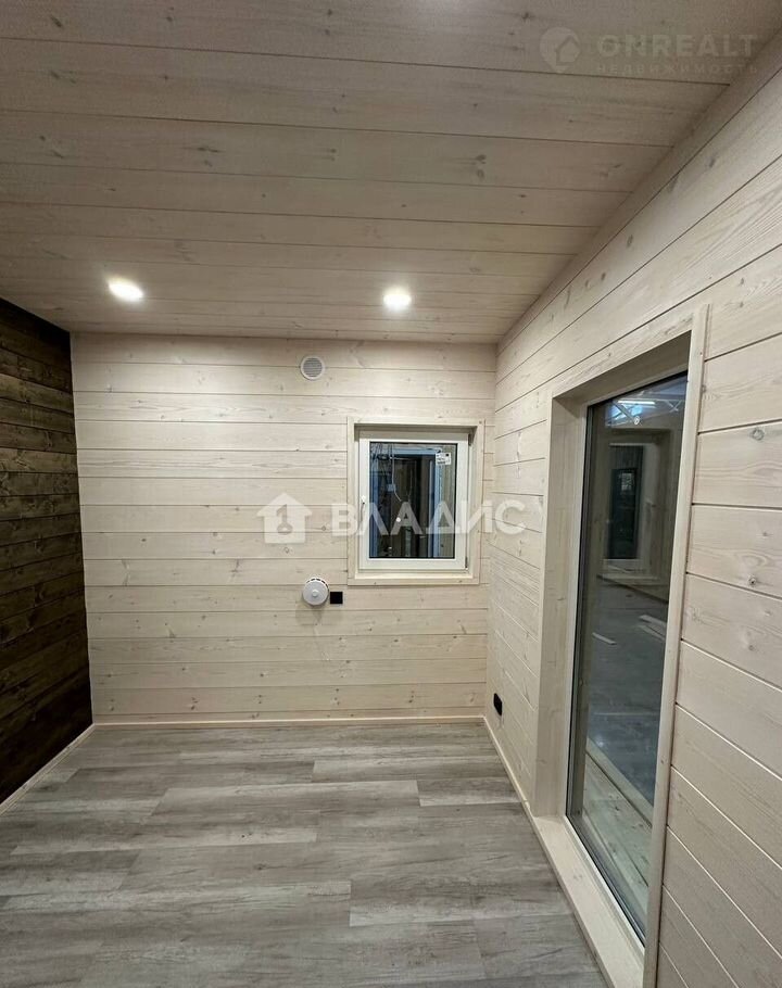 ВНУТРЕННЯЯ ОТДЕЛКА: напольное покрытие - ламинат 33 класса; стены и потолок - имитация бруса (доска хвойных пород, сорта АБ, толщина 21 мм, окраска белым лаком на водной основе)/Декоративные элементы из реек; торцевые стены - сухая строганная доска (хвойные породы, сорт АБ, 20*120); санузлы - керамическая плитка.