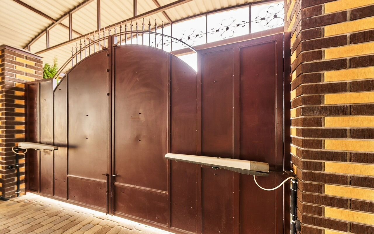Въезд на участок возможен с двух сторон. Автоматические ворота с навесом.