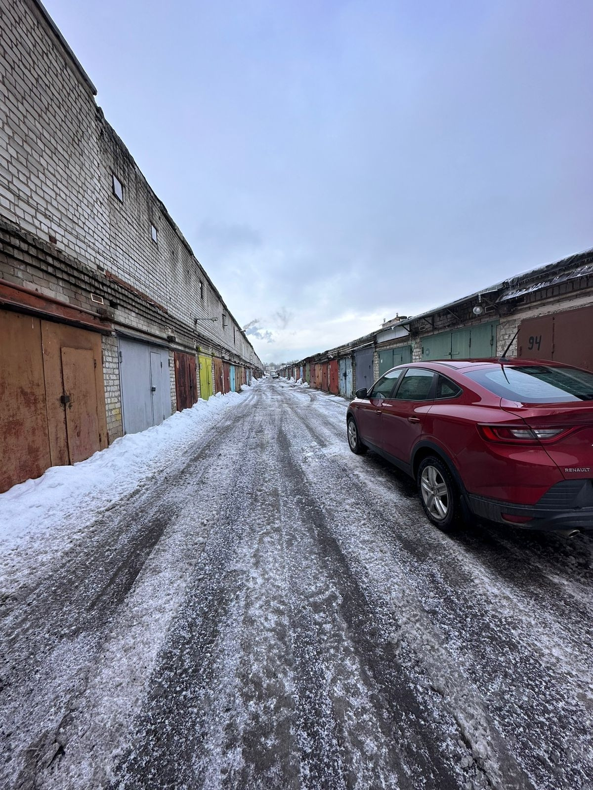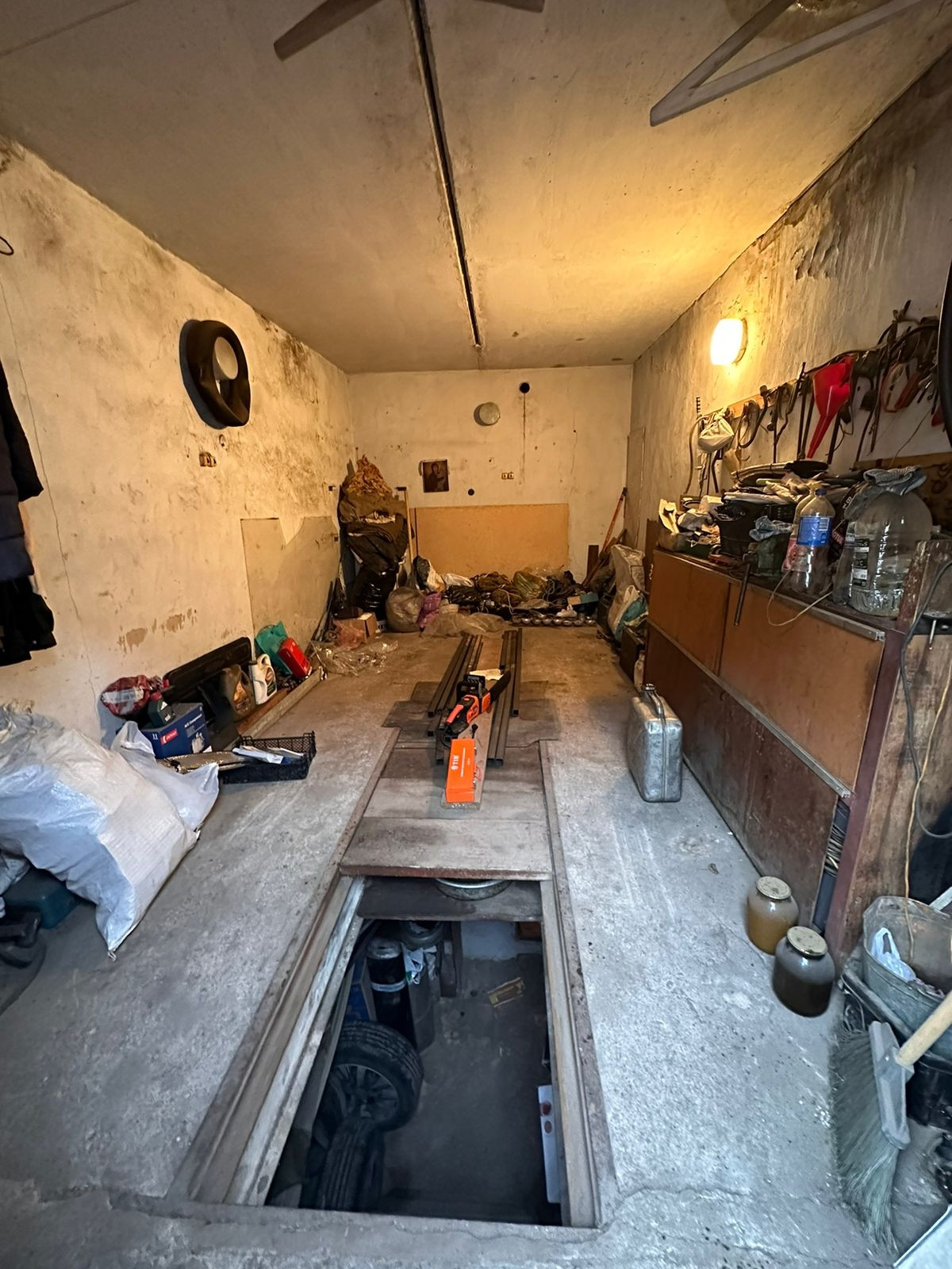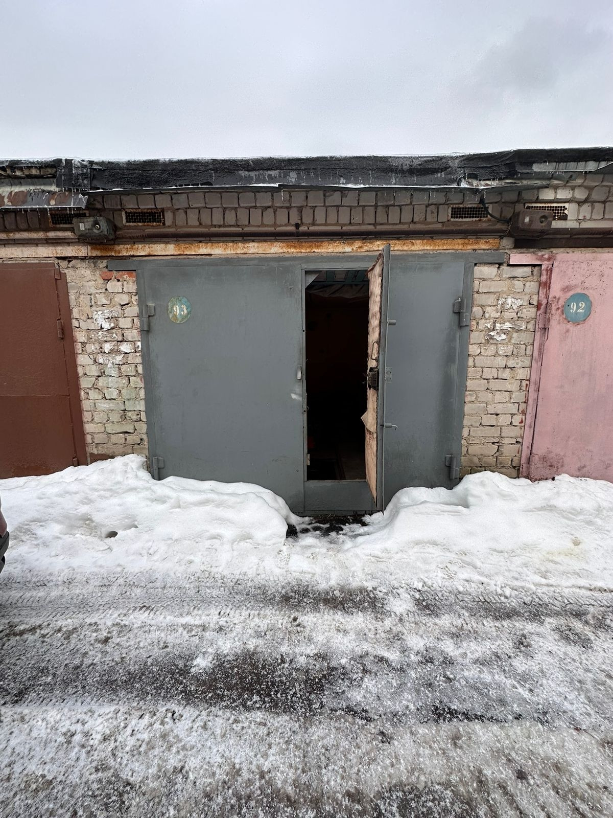 двухуровневый с погребом, с ямой. остановка рядом. камеры по всему периметру, шлагбаум при въезде. 3,2*6