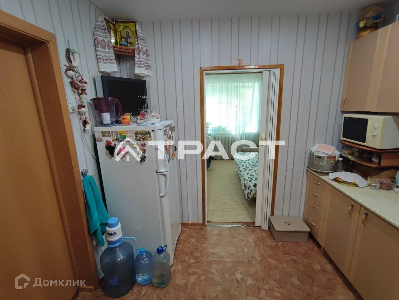-Наша комната разделена на две зоны: кухня-прихожая и зона отдыха. Состояние отличное. Пластиковое окно, натяжной потолок, на полу линолеум.