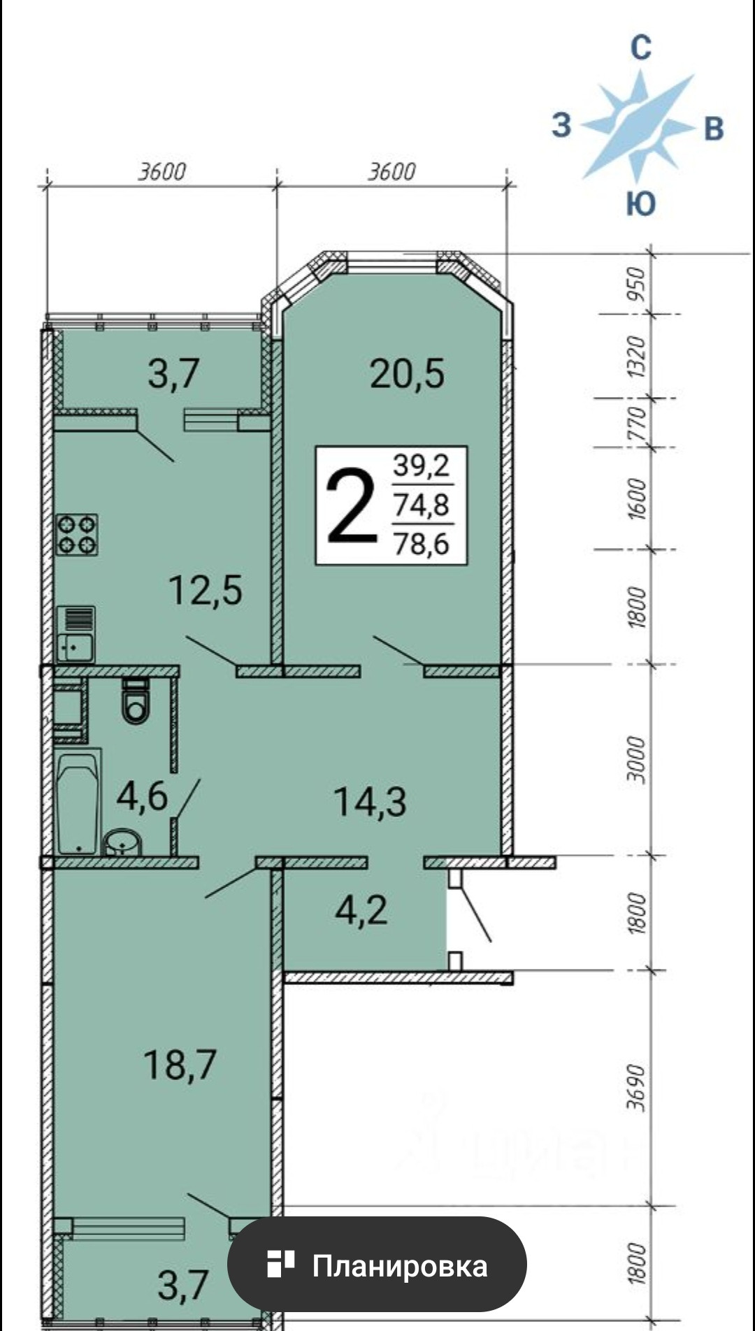 Общая площадь 78.6 м2