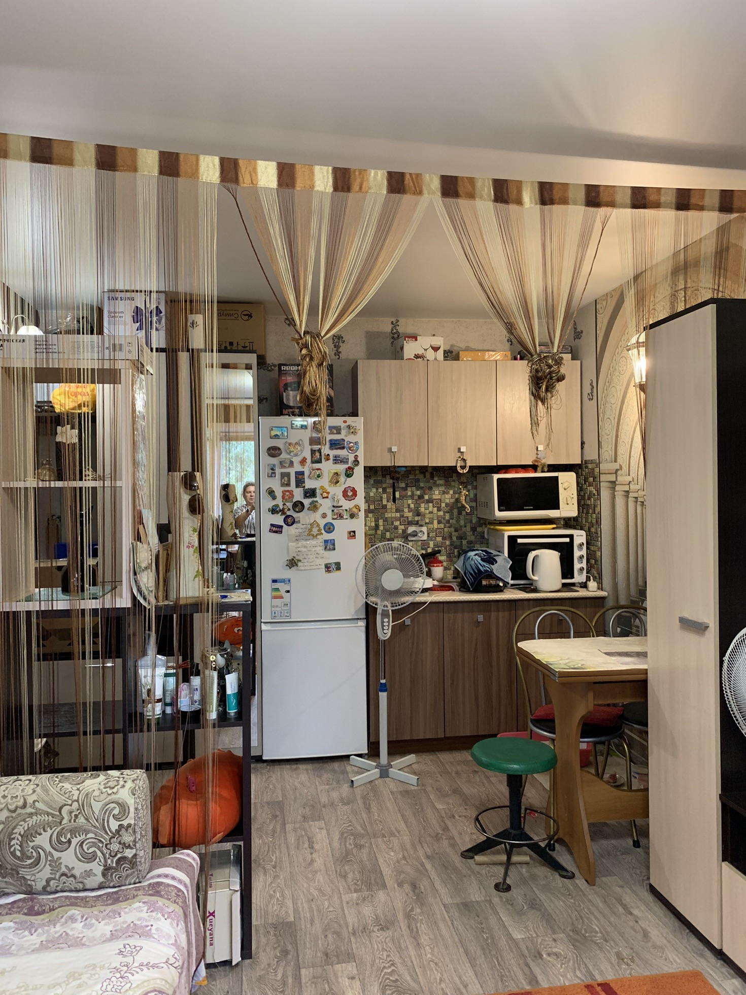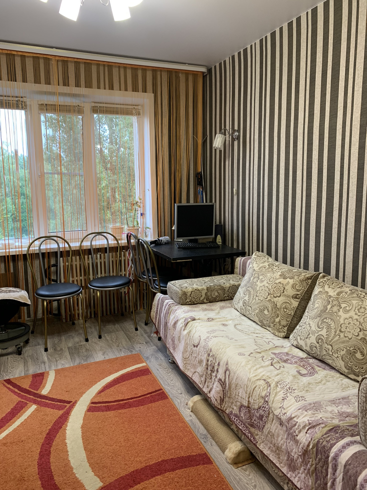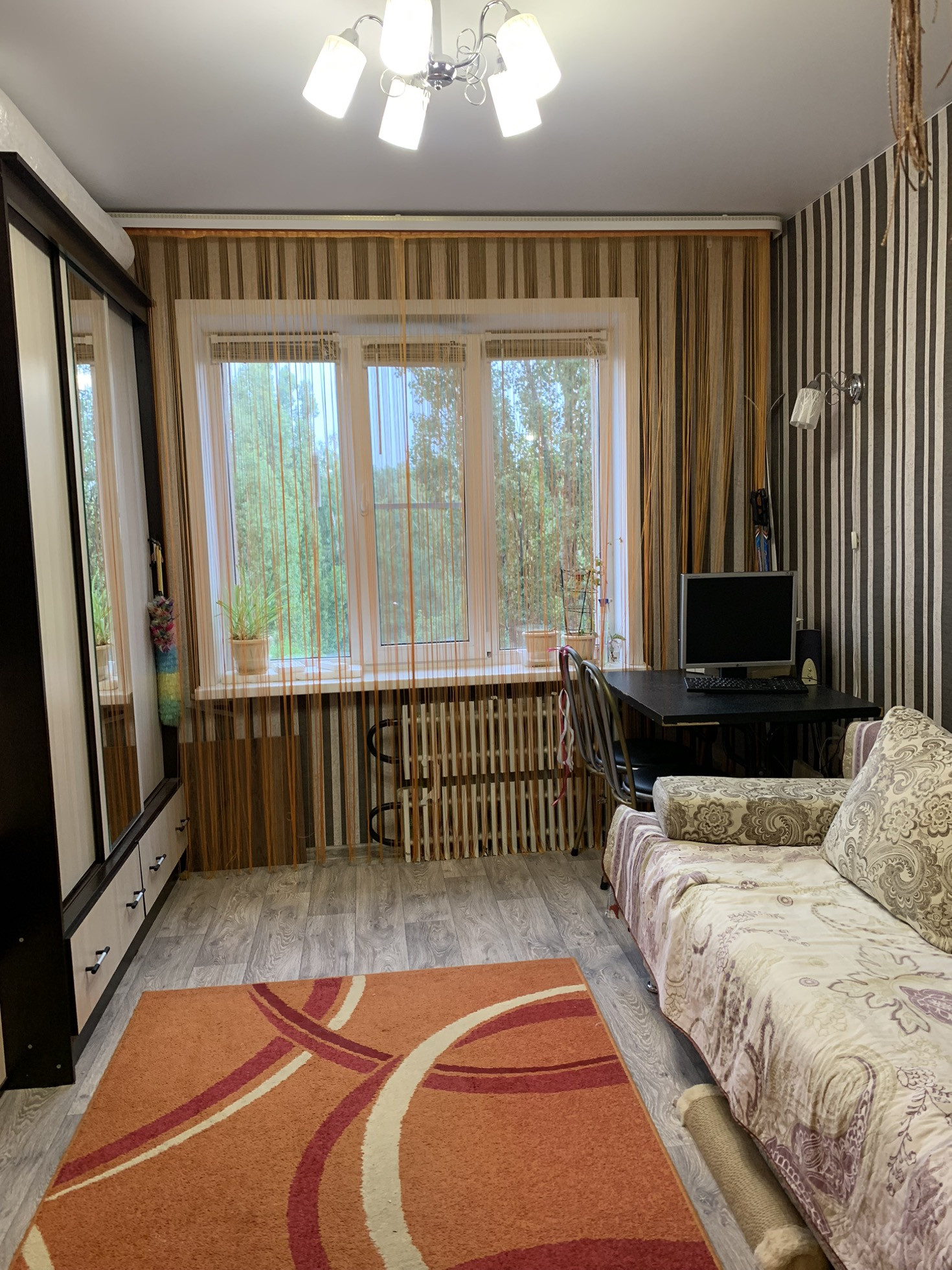 Сделан ремонт, потолок натяжной, на полу линолеум, окно пвх, качественная входная дверь. В комнате есть зона кухни. В местах общего пользования чистота, никаких посторонних запахов.