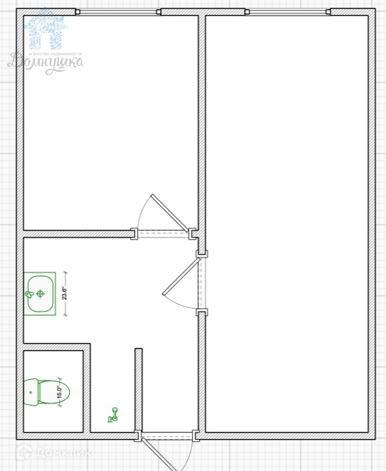 Есть возможность вывести мокрую точку в меньшую комнату и сделать полноценную кухню.