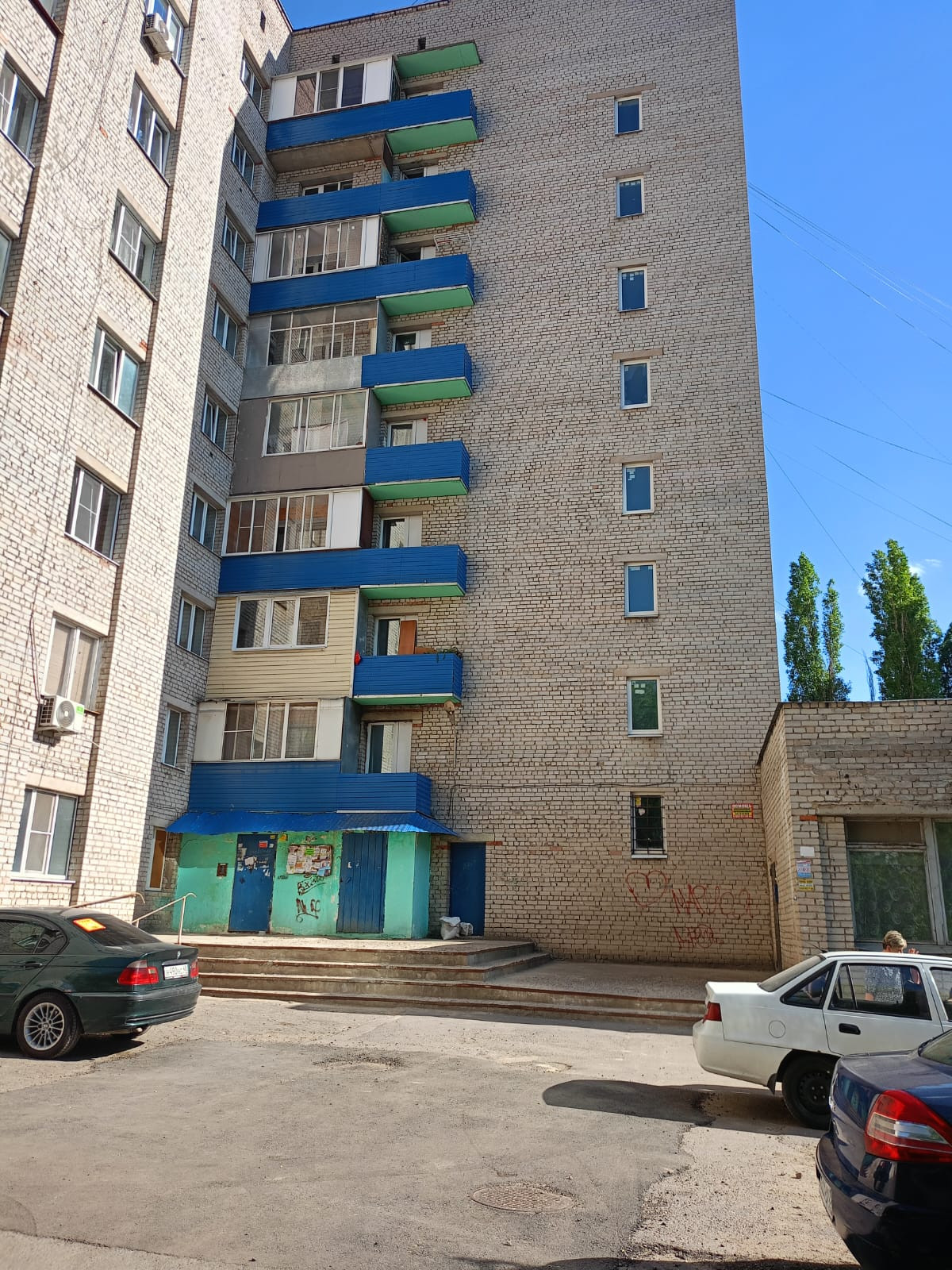 Месторасположение очень хорошее- рядом парк для прогулок, остановки транспорта, магазины, школа, д.сад.